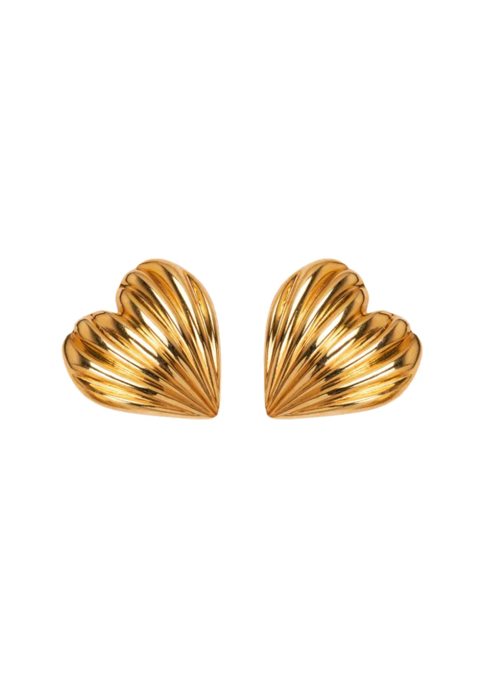 “Everything has a story to tell,” says Jennifer Behr, the founder of her namesake luxury hair accessory brand that has blossomed into one of New York City’s foremost ateliers for jewelry, as well as bridal. In every crystal, pearl, and ribbon, you’ll find the utmost quality and a sense of romance, as each piece reveals a modern interpretation of centuries-old regalia. The Libi Earrings in Gold are hard-carved heart studs with rich textural details. They were crafted with vintage jewelry in mind, evoking pieces from a priceless jewelry collection accumulated over years. Each earring sits on an angle to delicately frame the face.