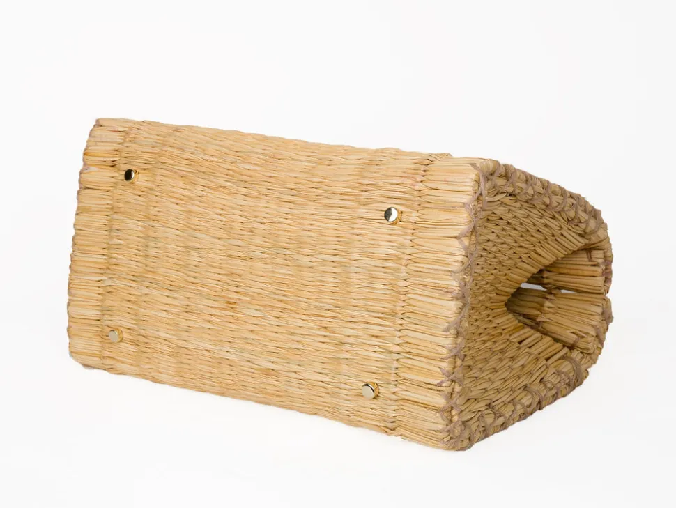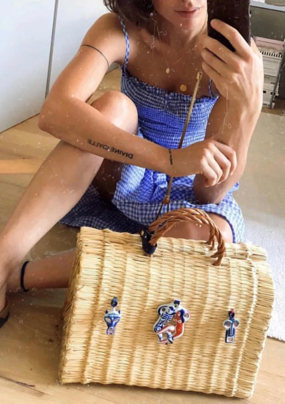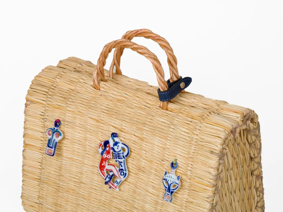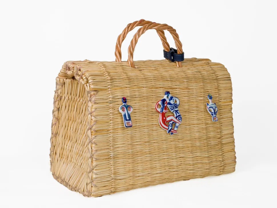 Founder Montserrat Álvarez marries the traditional craftsmanship of coastal Spain and Portugal to a modern sensibility with handwoven reeds, local leatherwork, and porcelain charms of the brand’s beach-to-city bags and unique accessories. The brand’s signature item, the Liebe Large Blue Bag, is a collage of hand-woven reeds from Portugal, colorful porcelain accents by Sargadelos, and a durable interior with a base formed of fine Spanish leather. A final touch: golden feet, to help keep your bag clean and dry.