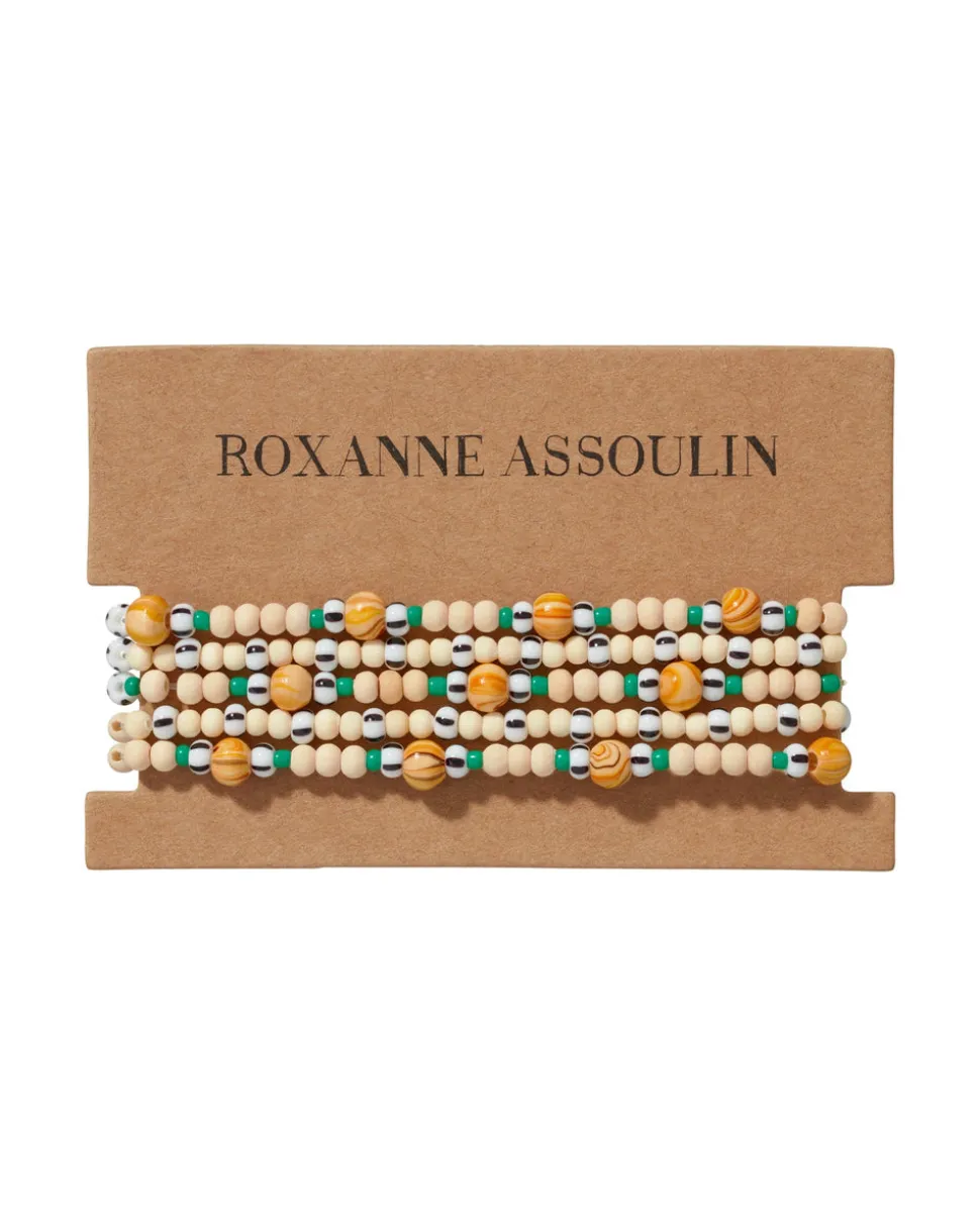 Whimsical, colorful, and crafted with tone-perfect details, Roxanne Assoulin’s four decades of experience—designing for the likes of Marc Jacobs and Oscar de la Renta—are expressed in every piece of her candy-inspired collection of bracelets, chokers, earrings, and more. As the brand likes to say, and as every “it” girl knows, it’s jewelry that makes you smile. The Life’s a Beach Bunch brings a chic, effortlessly off-duty summer energy to any look.