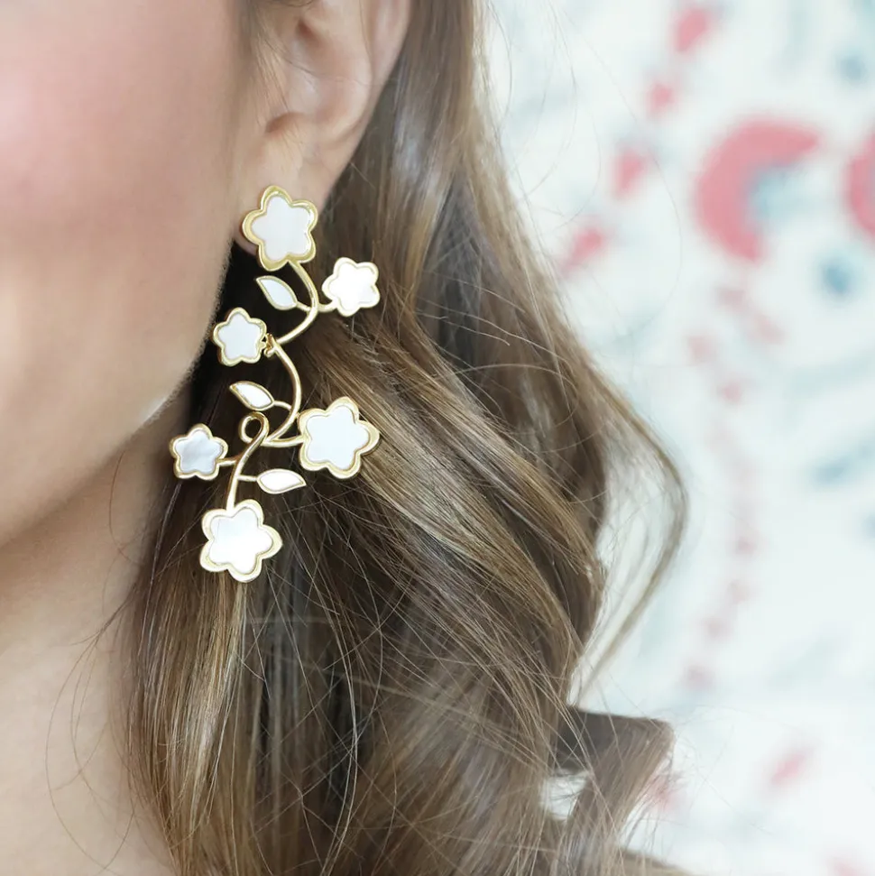 Inspired by art, architecture and the founder’s global journeys, ASHA by Ashley McCormick introduces bold, sophisticated jewelry and accessories made from only the finest materials. From everyday glamour to the red carpet, these Statement pieces are as eye-catching as they are classic. Inspired by the Bougainvillea in St. Barths, the Lilia Chandelier is designed to evoke the luxury and relaxation of the Caribbean islands. Crafted in 14K vermeil, with mother-of-pearl centers, these earrings are a once luxurious and a callback to nature. Absolutely divine.
