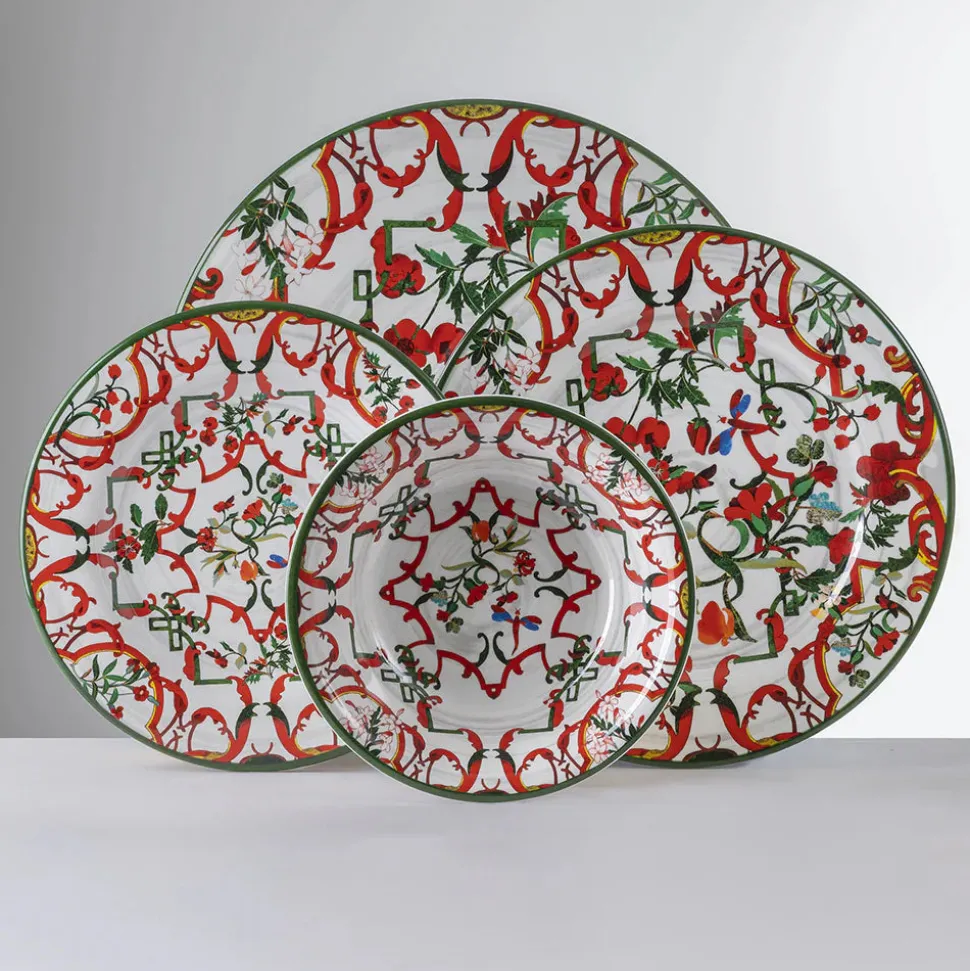 Mario Luca Giusti brings timeless Italian elegance to everyday living with pieces that fuse classical form and contemporary innovation. Crafted from luminous synthetic crystal, each design transforms functional tableware into a visual statement—equally suited to indoor and outdoor use. The Lillybet Dinner Plate features a colorful composition of greens, reds, and vibrant pops of blue, yellow, and orange. Its lively floral-inspired print brings warmth and character to both casual meals and open-air occasions.