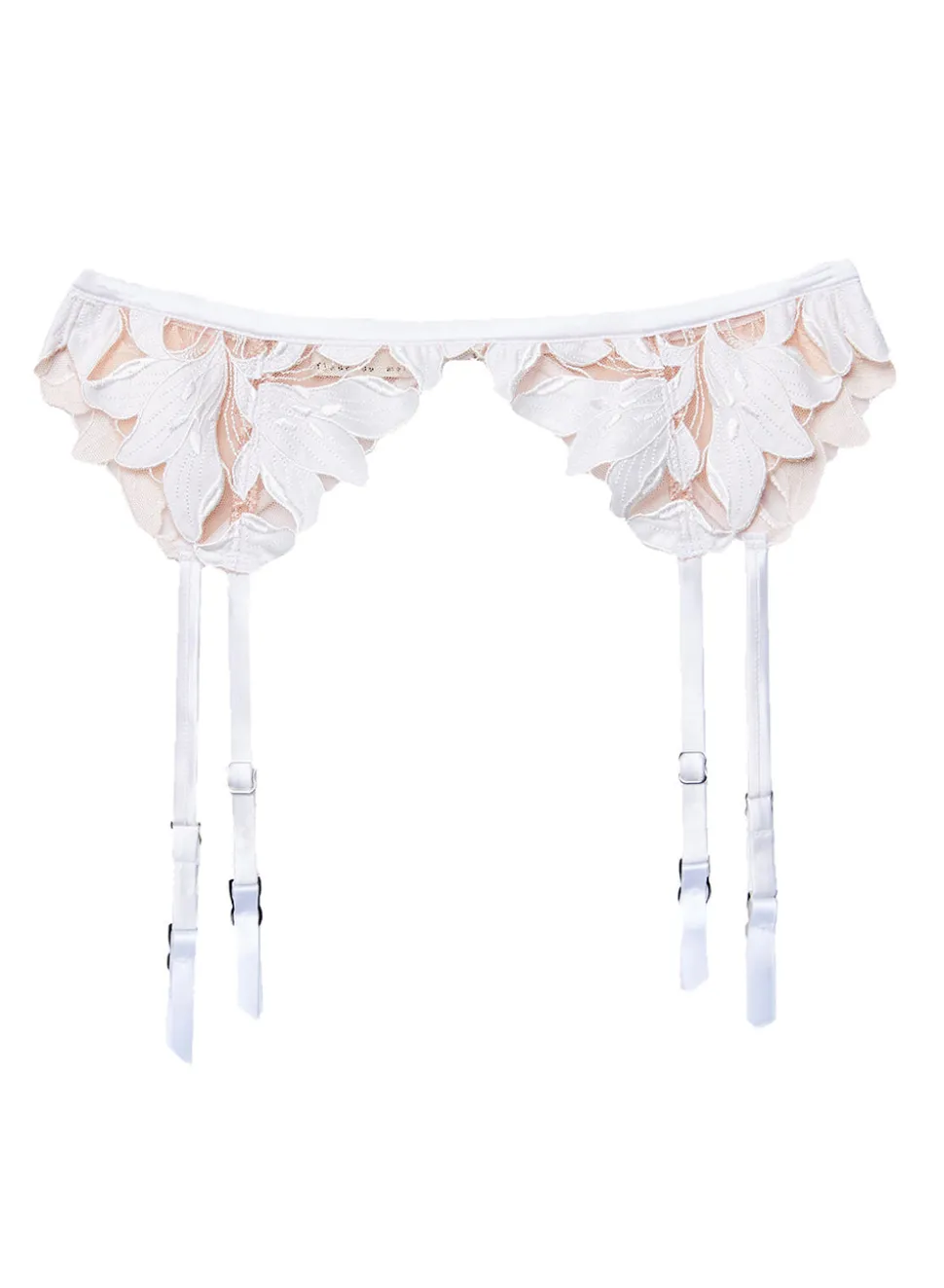 Inspired by Charles Baudelaire’s masterful collection of poetry entitled “Les Fleurs du Mal,” Jennifer Zuccarini founded Fleur du Mal with the belief that wearing beautiful lingerie should be an everyday affair. Tastefully provocative, the luxury brand has amassed a cult following of devotees who adore the sultry and empowering pieces. The Lily Embroidery Garter Belt in Ivory is the finishing touch to any bra and panty set, crafted with signature lily embroidery and sheer mesh paneling. A center back closure sits neatly at the waist, making this piece a sensual staple designed to pair with the Lily Embroidery Plunge Demi Bra and Hipster Thong.