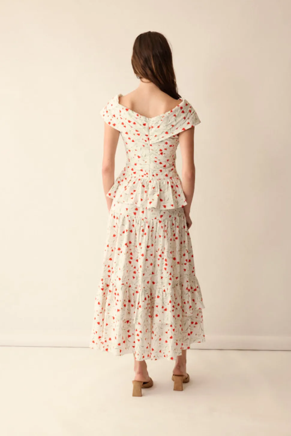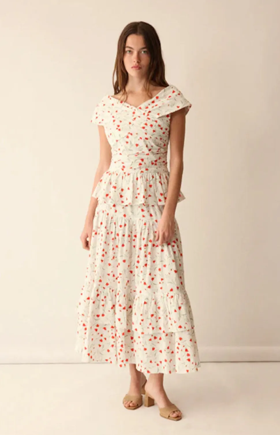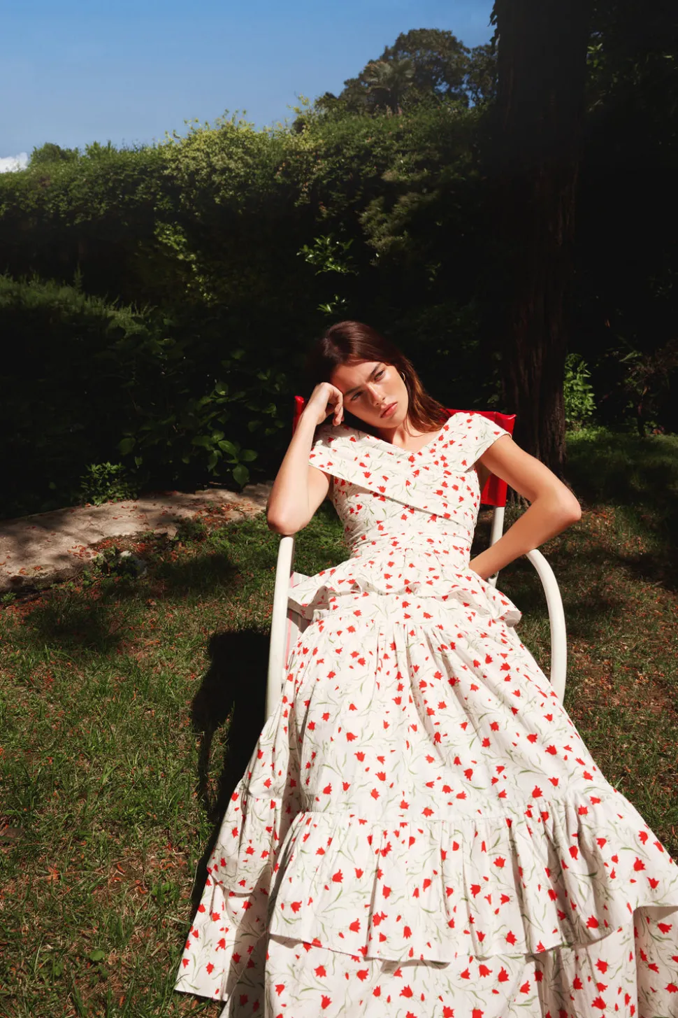 Loulou, founder of Loulou La Dune, extends her refined feminine touch from interior design and tableware into the realm of ready-to-wear fashion. Recognizing the desire for beautifully crafted, effortless, and chic clothing, she has created a capsule collection that integrates elegance and ease into everyday wear. A sweet, summery staple defines the Lily Top in Red. Its peplum silhouette beautifully cinches at the waist, creating a flattering shape for all body types. The pleated bodice adds a touch of sophistication, while the stunning deep V-neck décolleté offers a hint of allure. The lightweight cotton fabric ensures breathability and comfort, making it ideal for warm, sunny days. Style it with its matching skirt for a harmonious, garden-inspired look.