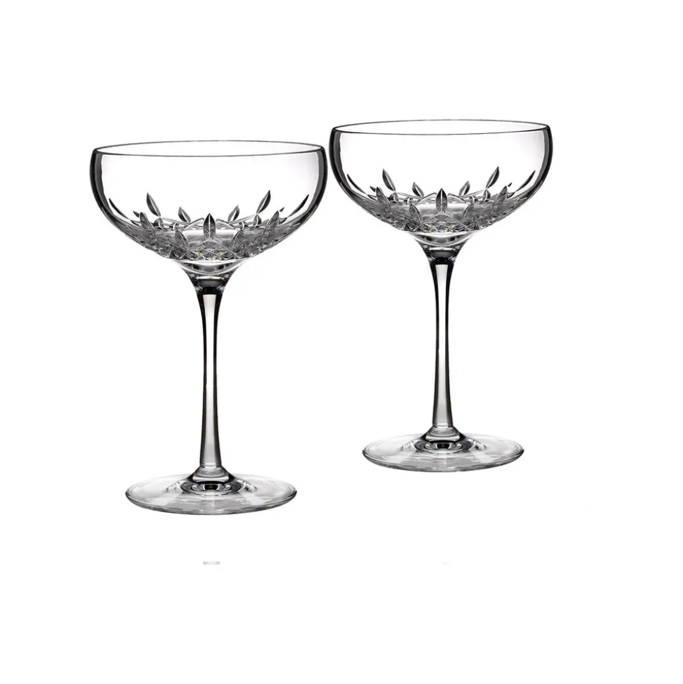 For over 200 years, Waterford has used its Irish heritage and artistry to produce hand-crafted luxury crystal. From this first sketch, through the process of molding and blowing the glass, to the hand-detailing and cutting, Waterford’s artisans apply a level of precision, care, and quality that has placed it among the world’s finest makers of crystal glasses, bowls, and objects for the home. The brand’s best-selling Lismore pattern is beloved for its signature diamond and wedge cuts, displayed beautifully with the Lismore Essence Champagne Saucer 9.5 oz, Set of 2, the perfect retro-shaped glasses to toast with your favorite bubbly.