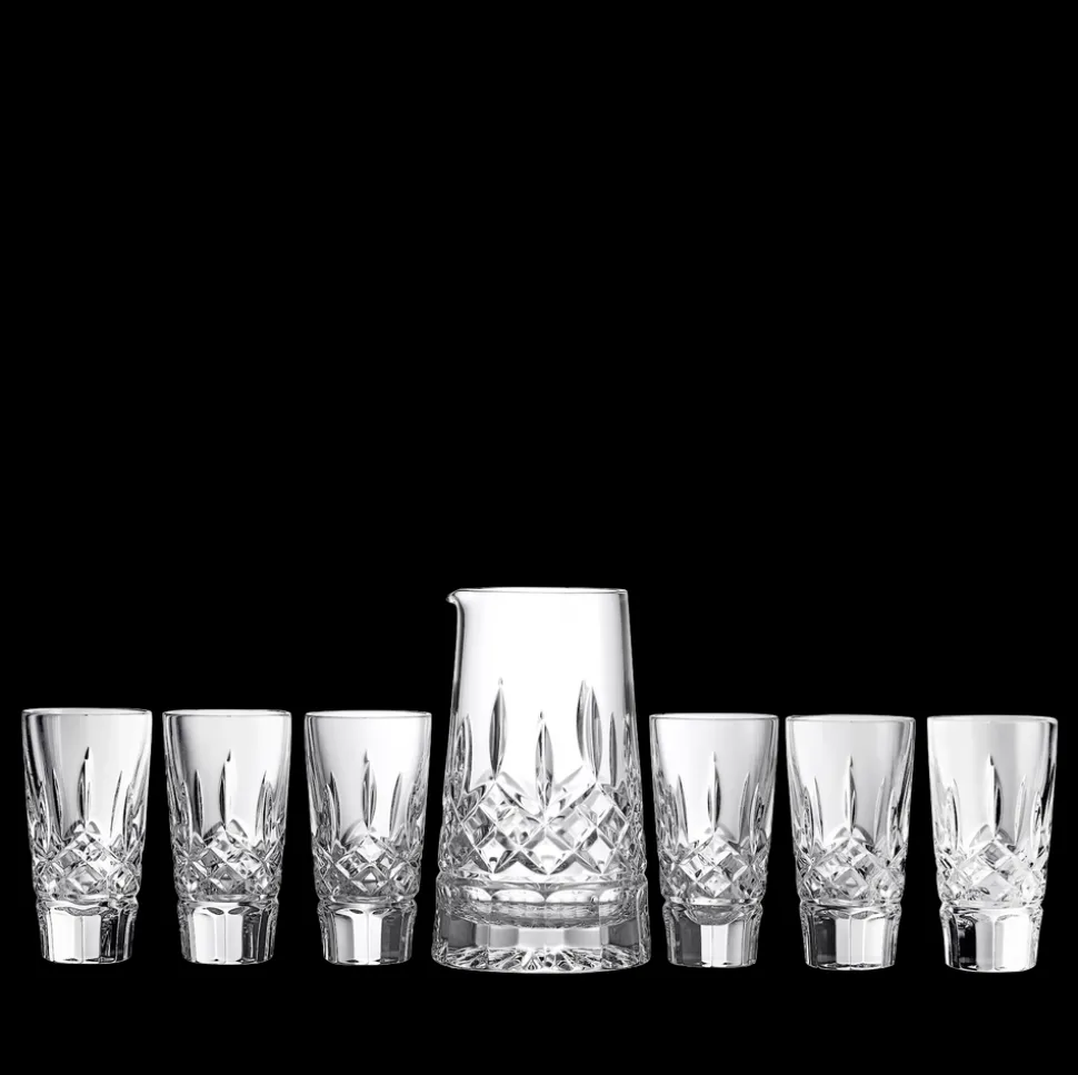 For over 200 years, Waterford has used its Irish heritage and artistry to produce hand-crafted luxury crystal. From this first sketch, through the process of molding and blowing the glass, to the hand-detailing and cutting, Waterford‚Äôs artisans apply a level of precision, care, and quality that has placed it among the world‚Äôs finest makers of crystal glasses, bowls, and objects for the home. The Lismore pattern, introduced by Miroslav Havel in 1952 and inspired by the remarkable gothic magnificence of Lismore Castle, has developed into one of Waterford’s most iconic collections. This crystal shot glass and pitcher set is thoughtfully designed to bring a touch of romantic nostalgia to your celebrations.
