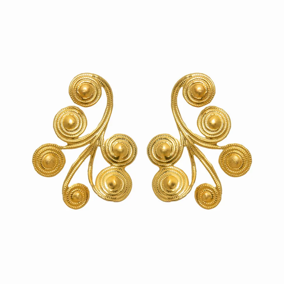 Founded in 2002 by designer Jade Gedeon, We Dream In Colour is powered by a team of women at their North Shore studio in Boston. Each piece of jewelry is assembled by hand, and the company works hard to operate in a socially conscious fashion every step of the way while creating their whimsical, elegant designs. The Little Leiria Earrings feature swirls of delicately textured brass that are carefully curved to create this striking and brilliantly light pair.