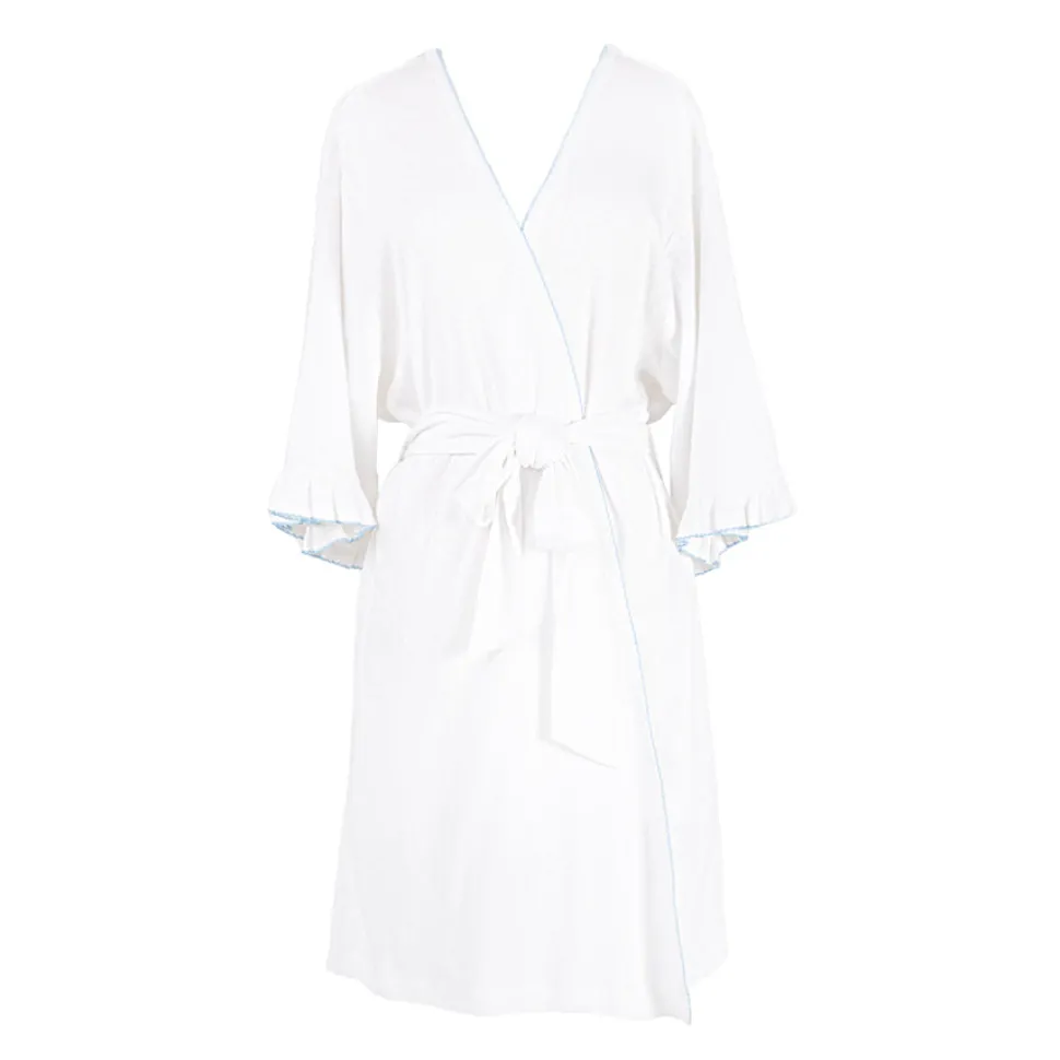 Timeless quality meets everyday living in Lenora’s ladies nightwear, travel accessories and baby clothes. Through their premium offerings, Lenora seeks to elevate every facet of a woman’s wardrobe, and their home. Meet the Liza Pointelle Cotton Robe – an embodiment of elegance and comfort. Crafted in 100% cotton, with a delightful heart pattern for a touch of whimsy, the Liza Pointelle Cotton Robe envelops your the luxury of a kimono-style design, adorned with a charming ruffle along the sleeves, and embroidered crochet trim along. We love the chic details too, like the practical inside tie, removable belt, and 3/4 length sleeves.