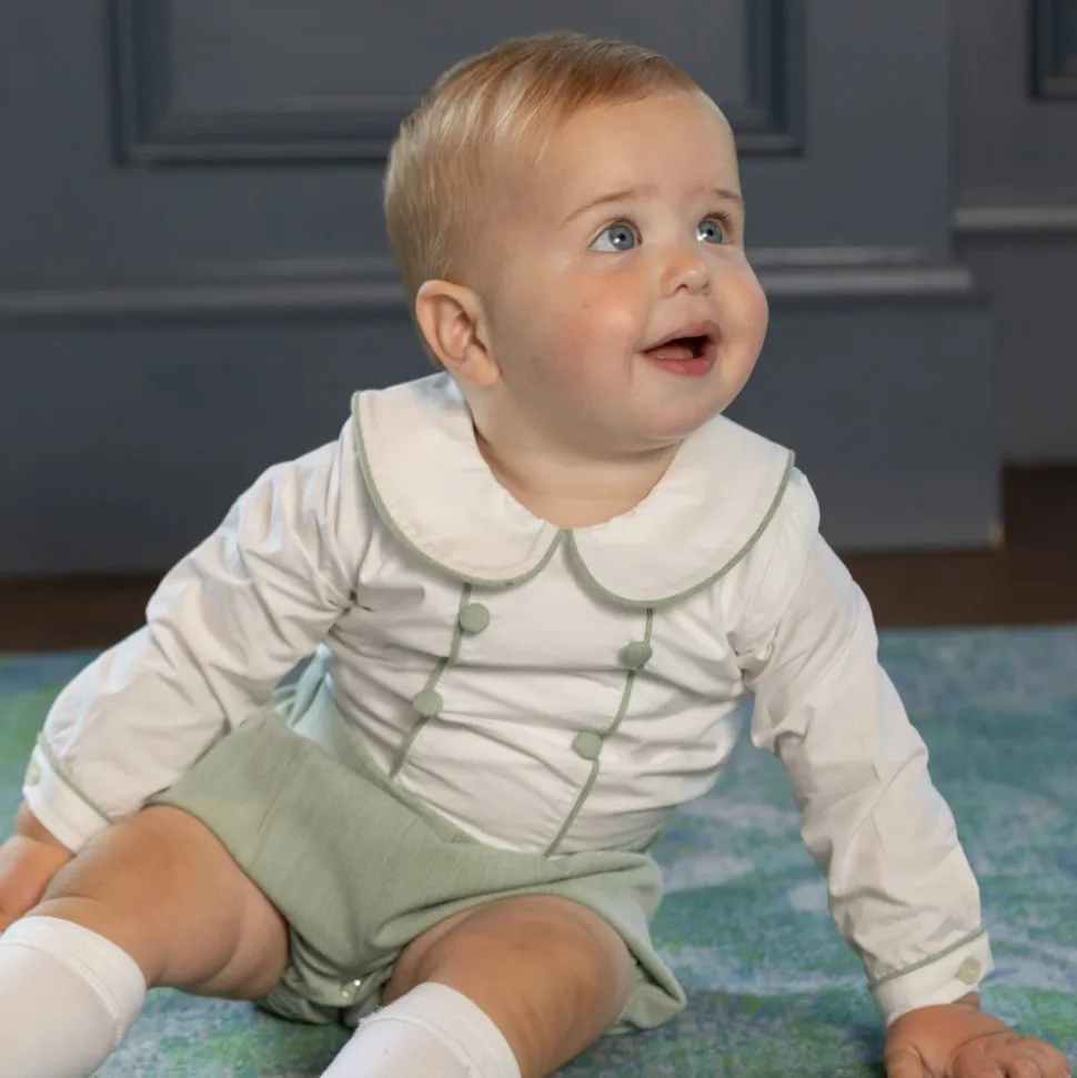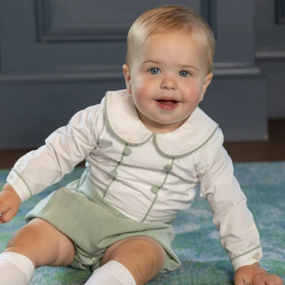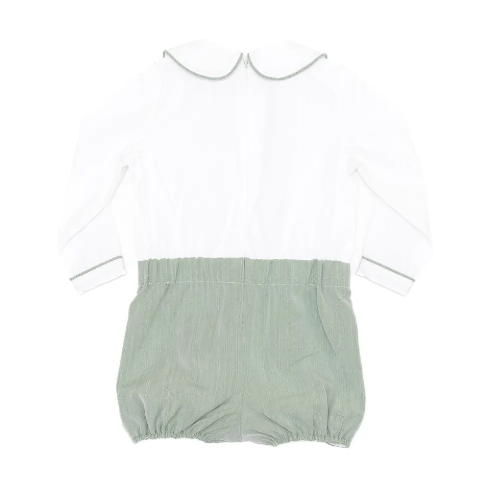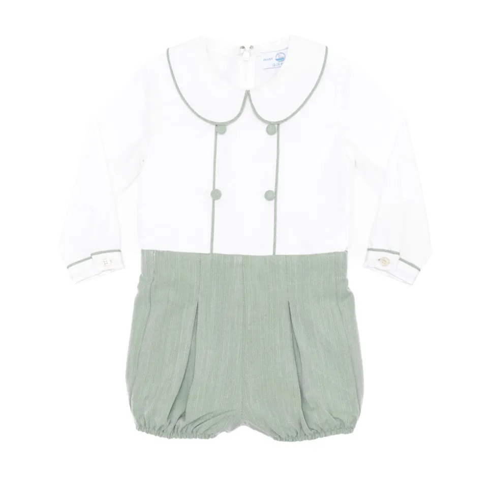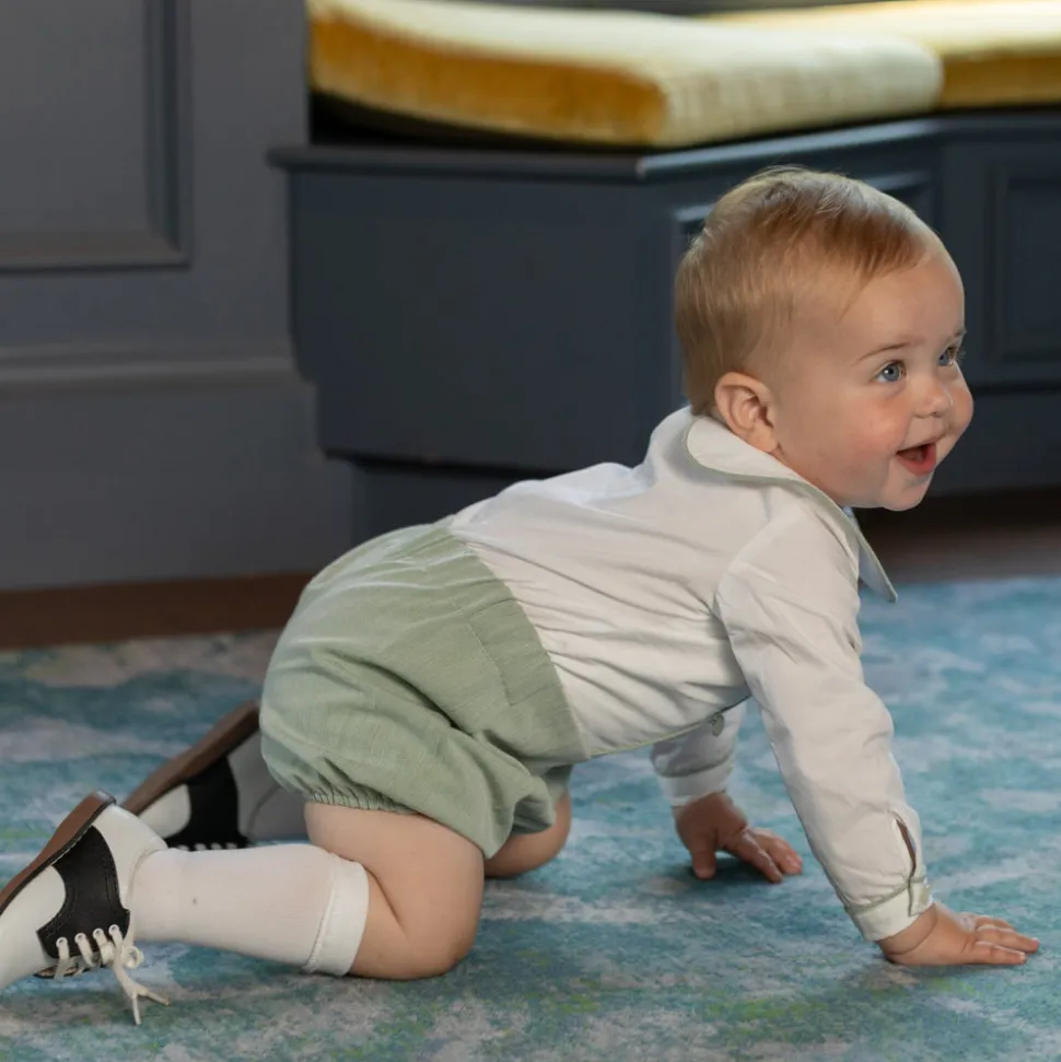 A celebration of the spirit of boyhood, the updated classics from Henry Duvall are curious, imaginative, and sweet. Full of character and playful details, these are easy-to-care-for clothes that families will love. A timeless essential for the well-dressed little boy, the Long Barrett Bubble in Hanover Herringbone is rooted in English heritage and reimagined for modern childhood. Crafted in exclusive Hanover Herringbone, a soft and breathable sage green fabric, this classic bubble features subtle texture and refined detailing for an heirloom-quality look. Designed to be cherished and passed down, this staple balances heritage with ease for the next generation. Coordinate with the Pippa Dress or Nora Dress for girls, or pair with sibling favorites like the Bradford Trousers, James Henry Jon Jon, or Sullivan Shorts Set for a family look.