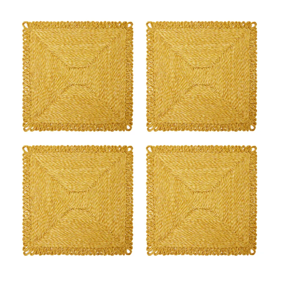 Inspired by stylistic trends from around the world, Caravan’s home accents embody an aesthetic that is both unique and unexpected, bringing everyday beauty and sophisticated simplicity to your home. Add a touch of elegance to your tablescape with the Loopy Square Placemat in Mustard, Set of 4. Featuring a natural weave design, these placemats are crafted from durable abaca, offering both style and functionality for everyday use. Sold in a set of 4, these placemats are easy to clean and perfect for casual family meals or more formal gatherings.
