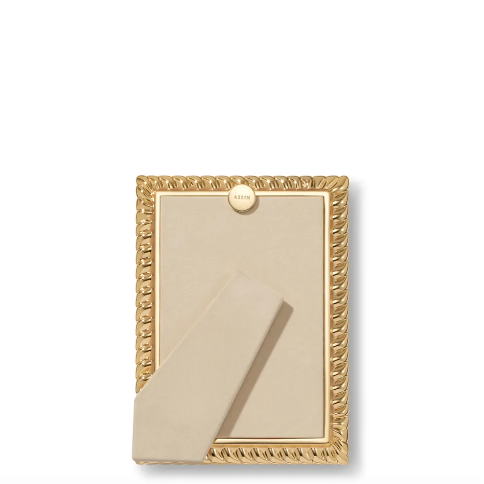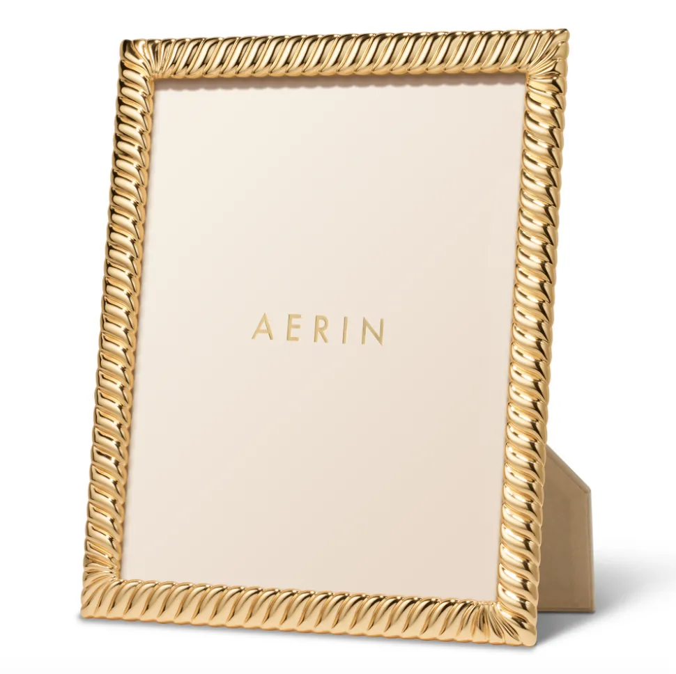Effortless, beautiful living is what’s important to Aerin Lauder. That ease and refinement shines through in every detail of her collections of beauty products, home decor, and fashion accessories. Presented in a classic gold finish, the Loretta Frame in Gold is elegantly proportioned, with a twist design that provides a voluminous aesthetic. This frame works well in any setting and is a perfect way to elevate a photograph of a loved one on a desk.