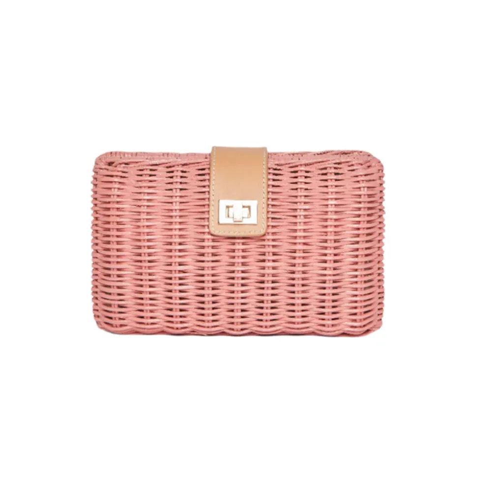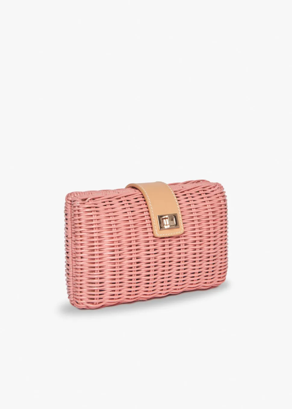 Straw is meticulously woven by hand. Handcrafted from all-natural woven rattan using a time-honored Filipino basketweaving technique. Features a gold toned turn lock closure and optional drop-in chain strap.