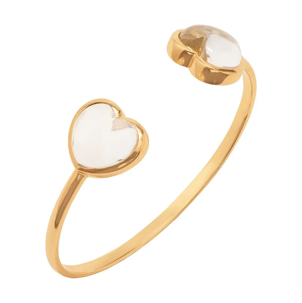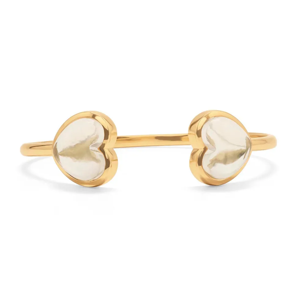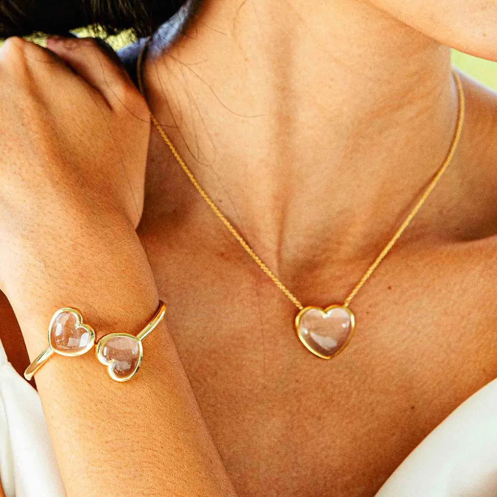 Half-Parisian, half-Texan, Capucine De Wulf’s unique upbringing was the inspiration for her namesake jewelry line. Her accessories combine French romance with an American sensibility. Clear quartz hearts wrap around and rendezvous at the wrist for a bit of whimsy and polish to embellish any outfit or occasion. Feminine, chic, and enveloped in gleaming gold, these hearts are sure to spark conversation wherever your adventures may take you.