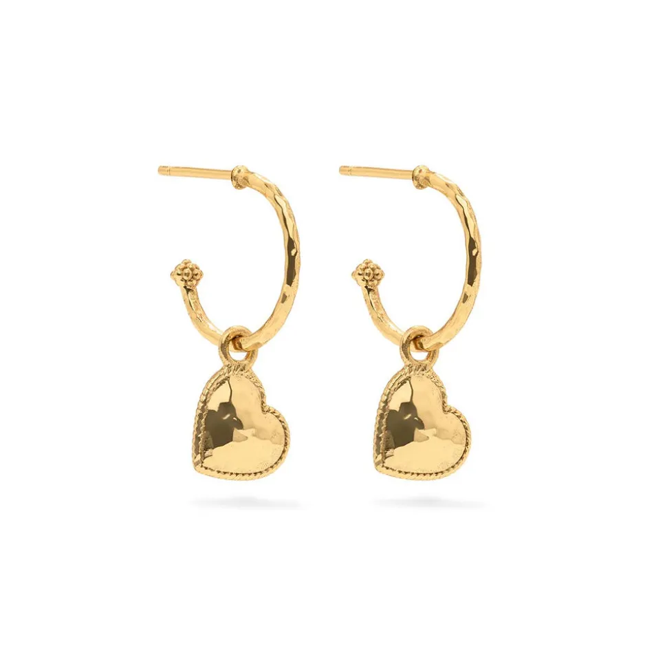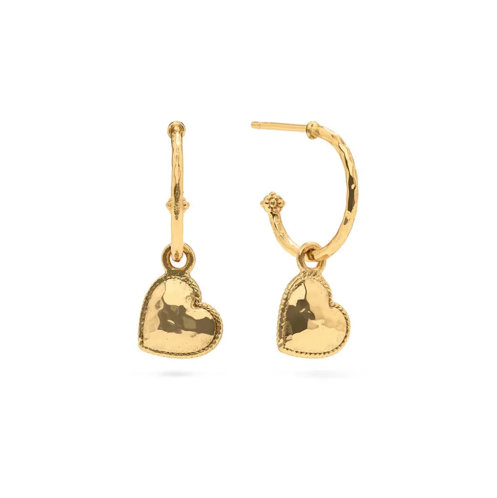 Half-Parisian, half-Texan, Capucine De Wulf’s unique upbringing was the inspiration for her namesake jewelry line. Her accessories combine French romance with an American sensibility. Quintessential hoops wrought in hammered gold, finished with berries, and embellished with dangling heart charms for a feminine flourish you will love wearing every day.