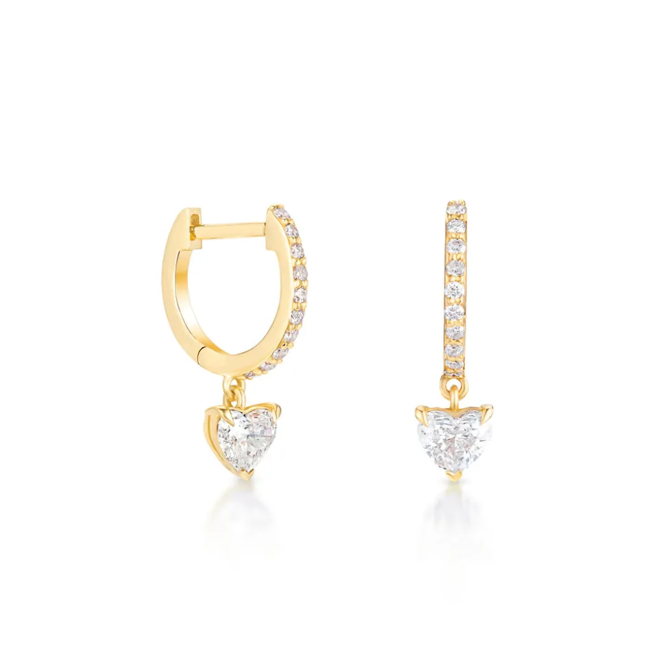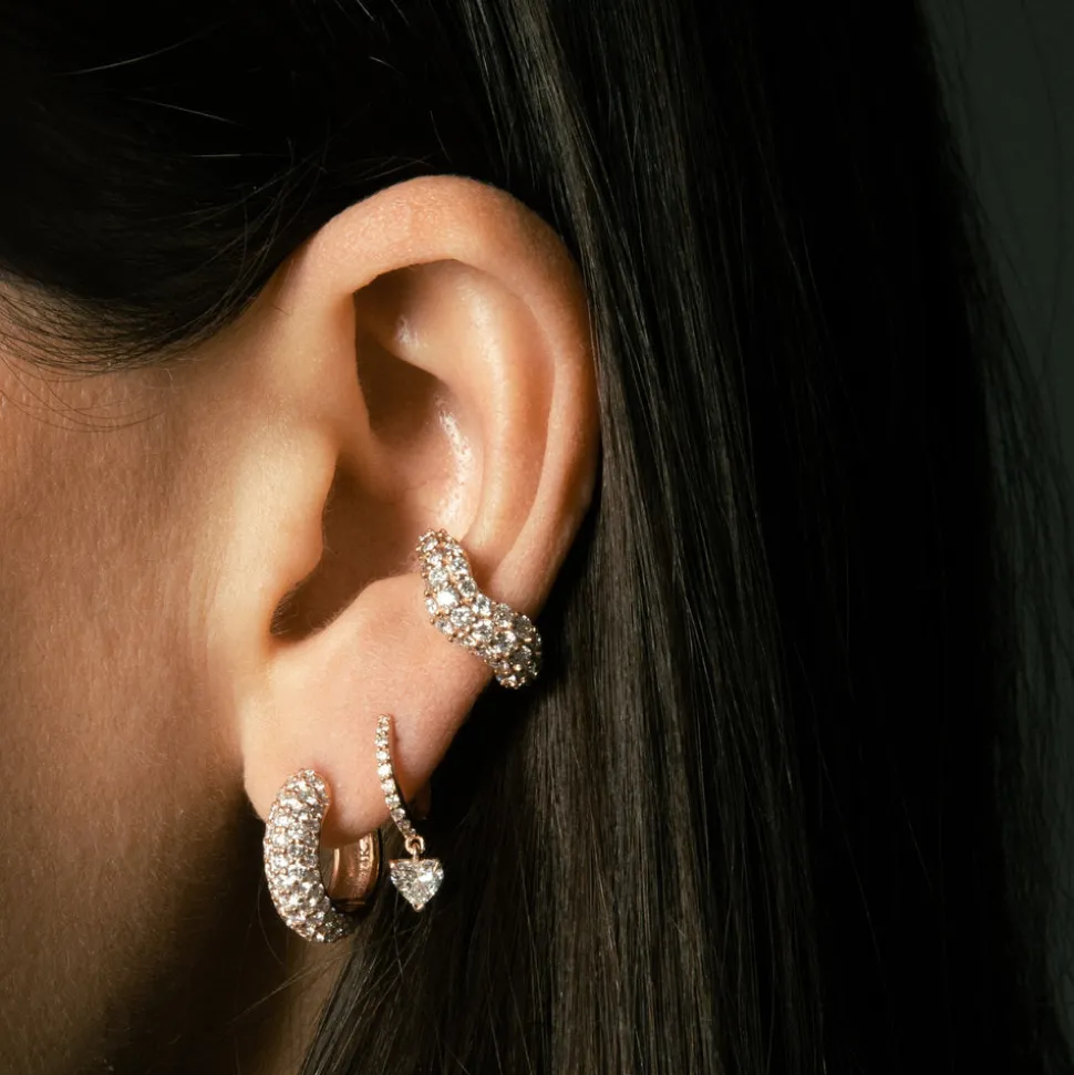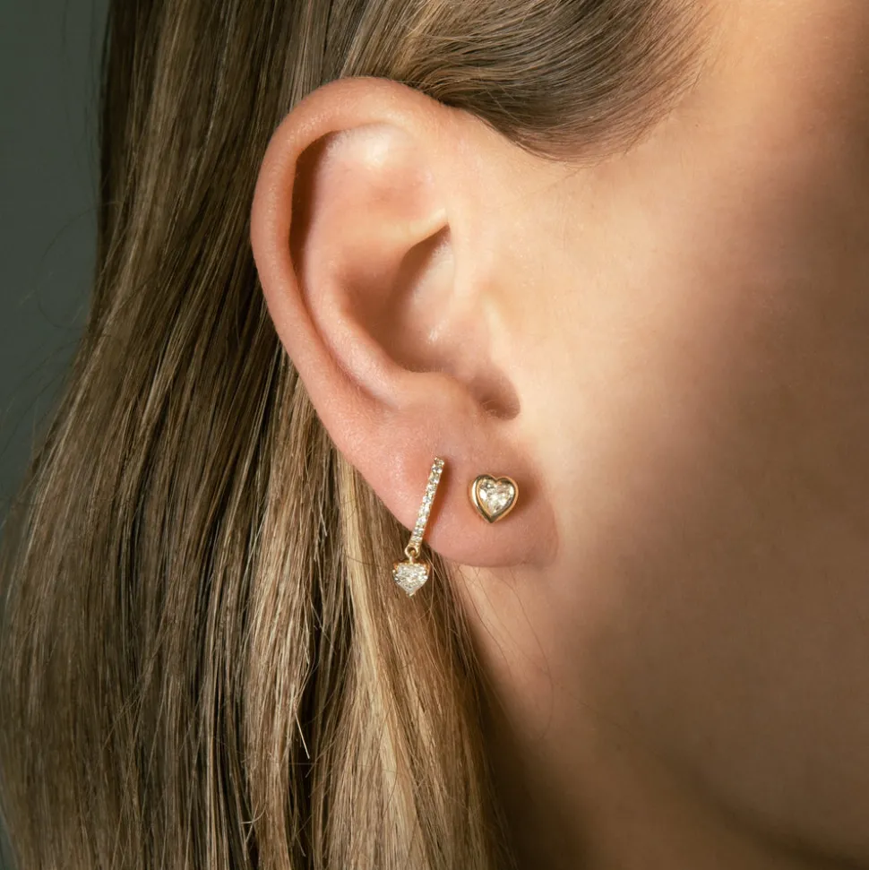 Born into a family of fine jewelers, sisters Oren and Yarden Katz use recycled 14 karat gold and ethically sourced diamonds to craft their contemporary pieces in their Downtown Los Angeles studio. Worn by the likes of Taylor Swift and Jessica Alba, the jewelers are inspired by antique and custom pieces found in their mother’s jewelry box, and each new collection brings a uniquely modern interpretation of heirloom design and technique. A dome shaped gold huggie gives way to a dangling diamond heart shape with a prong setting in the Love Huggies. Equal parts demure and decadent; all heart.