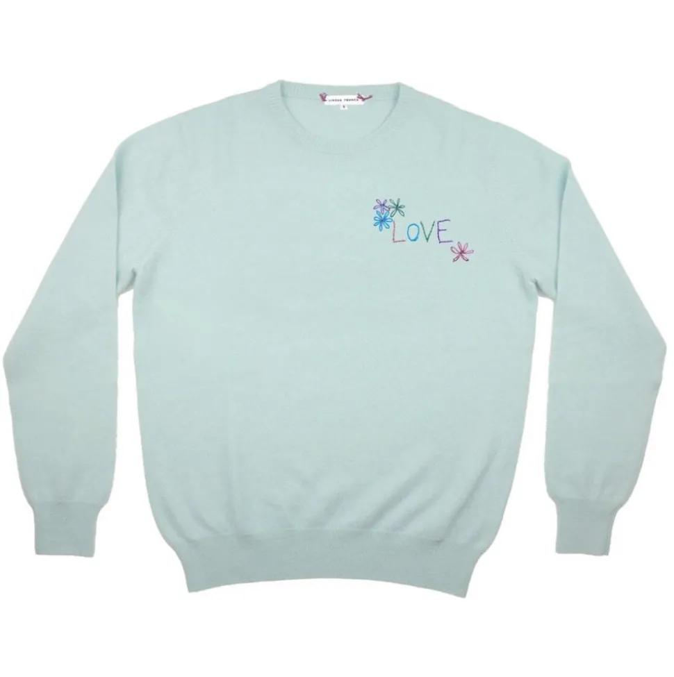 Each saying or phrase on Lingua Franca’s staple pullover sweaters is chalked in script by designer Rachelle Hruska MacPherson before it’s ever stitched. Made from the softest cashmere, this style is embroidered with the word “Love” surrounded by colorful starbursts. The fresh seafoam hue complements both light and dark denim, and the sweater is comfy enough to work from home in—but so cute you’ll end up wearing it everywhere.