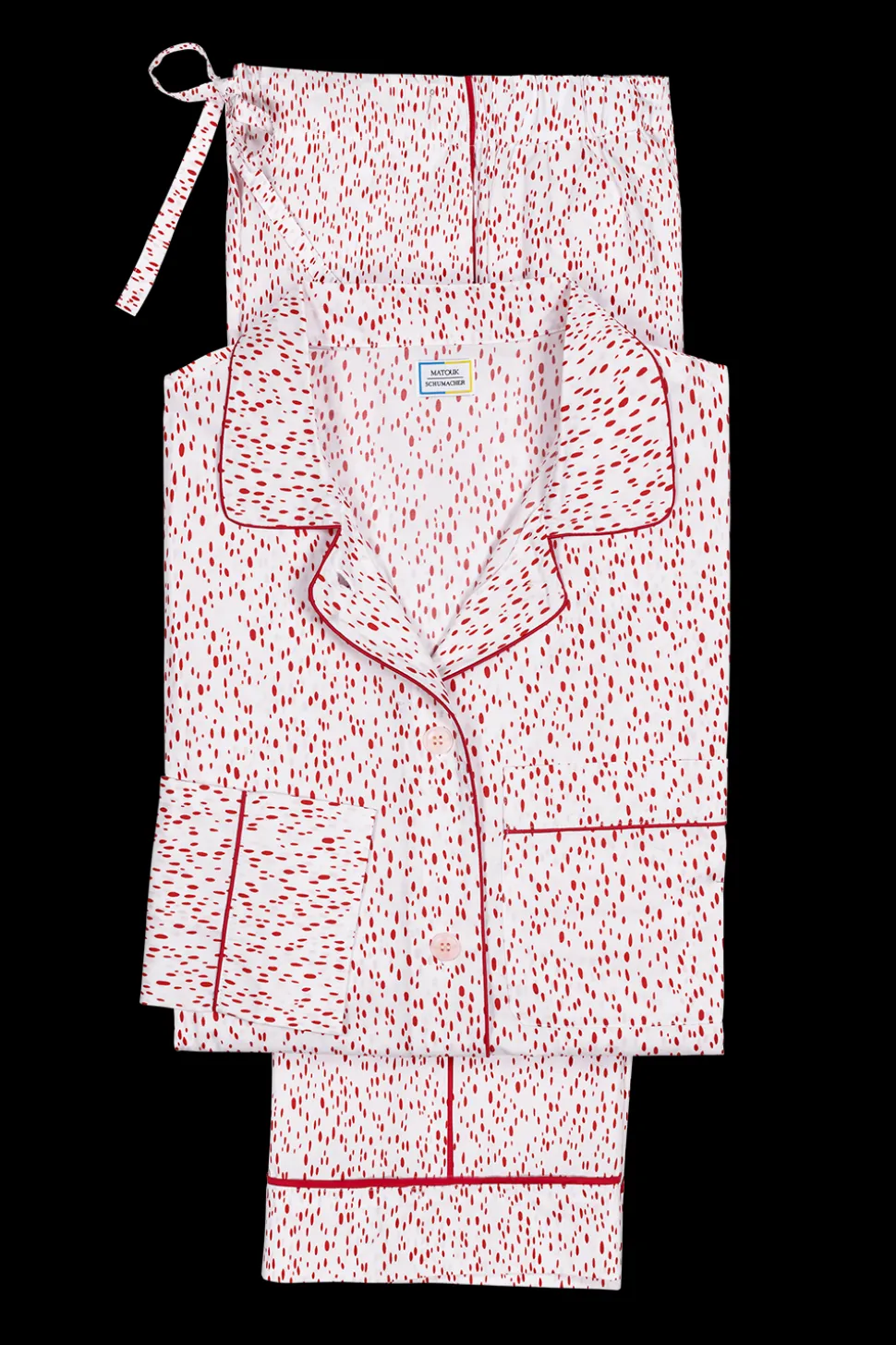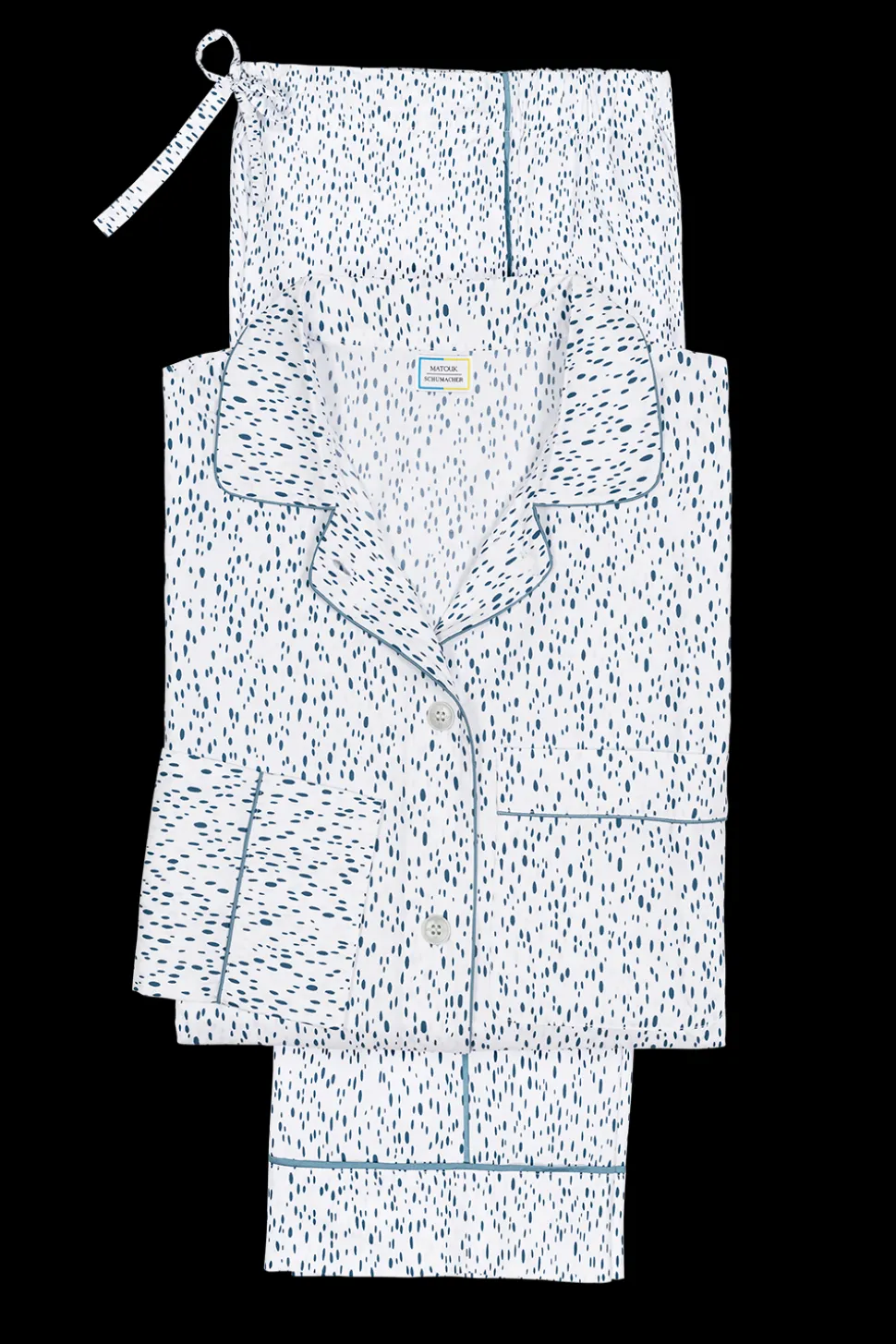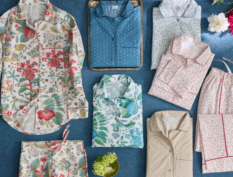 For nearly 100 years and three generations, Matouk has handcrafted luxury linens from the world’s finest materials. Their dedicated artisans in Fall River, Massachusetts are committed to creating the highest quality, most-loved bed, bath, and table linens for your home. Crafted from Matouk’s dreamy Luca cotton percale in a range of vibrant Schumacher prints, the Luca Pajama Set in Celine is a combination of the luxury of Matouk sheeting with the comfort of your favorite lived-in dress shirt. The top features natural corozo buttons, piped details, and a scooped hem. The drawstring trousers have elastic in the back for extra comfort and a flattering fit. Beautifully tailored, these pajamas are just as chic outside the house as they are in the bedroom.