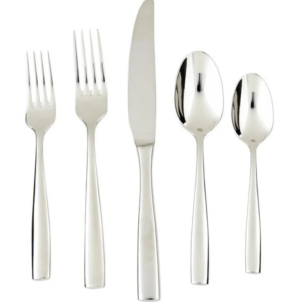 5 or 20 pieces. Stainless steel. Includes 1 or 4 of each: table fork, salad/dessert fork, table knife, dessert/soup spoon, coffee/ tea spoon.