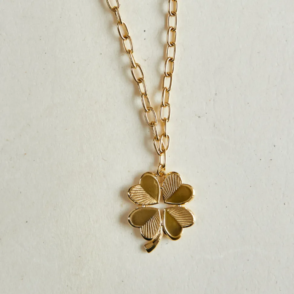 When you think HART, think of joyful jewelry. Created by Charlestonian Hart Hagerty in 2016, each piece of HART is a talisman to positivity, creating a soul-boosting experience for the modern, mindful woman. The Luck and Love Clover Necklace features the Luck and Love Clover Charm fixed on a 18″ or 22″ Heritage Chain. A classic, timeless clover infused with meaning, featuring four heart-shaped leaves with radiant etching, a North Star at its center, and “Bona Fortuna et Amor” (Good Luck and Love in Latin) engraved on the back.