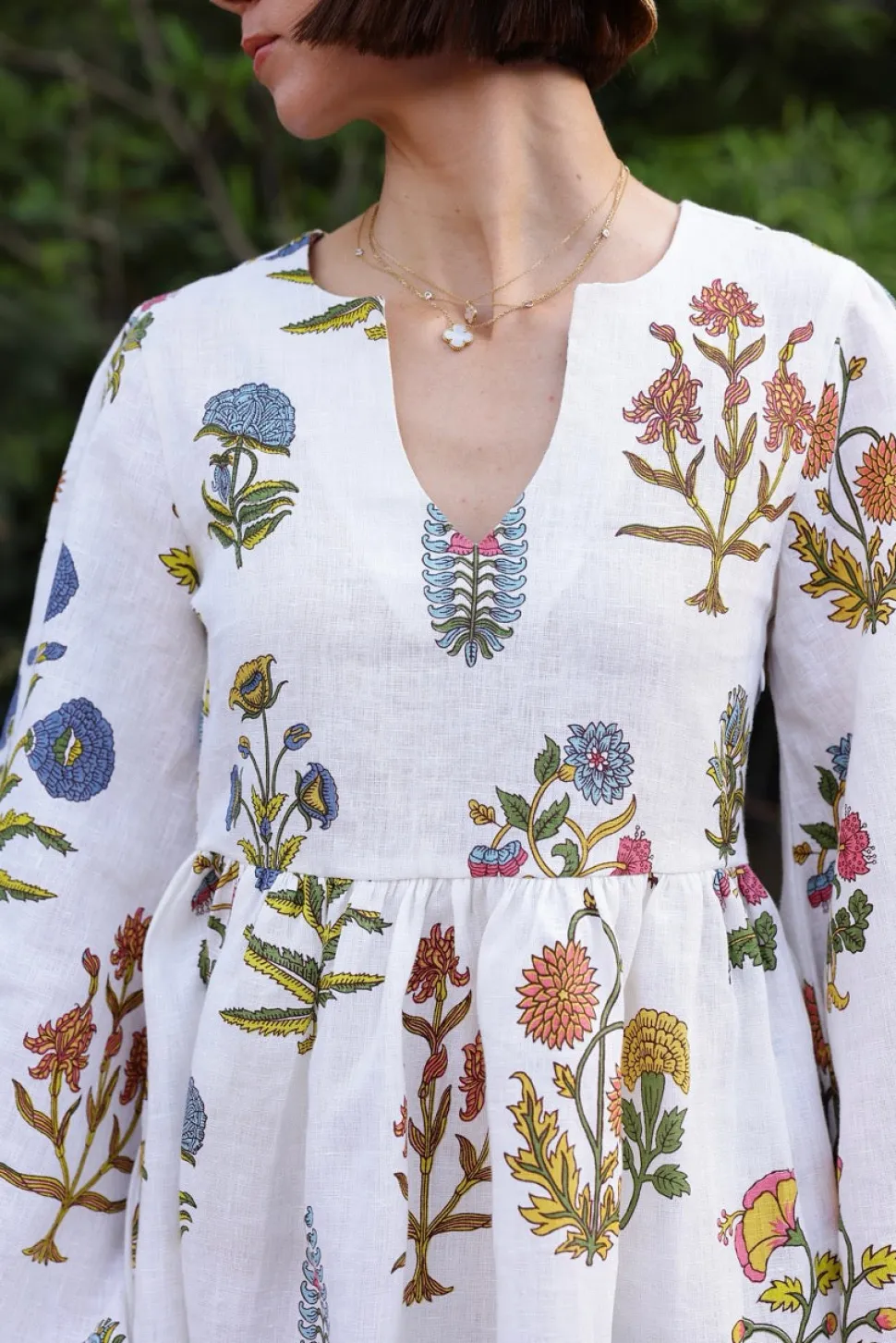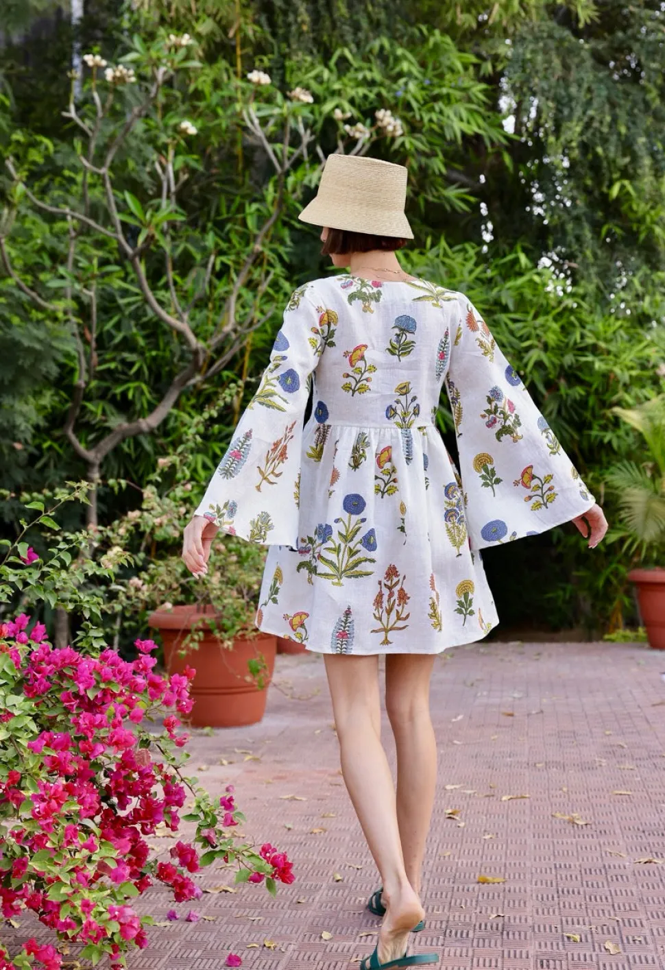Introducing Maison Marigold, a new luxurious small-batch women’s resortwear brand inspired the wanderlust of travel. Our collections effortlessly transition from beachside lounging to an elegant evening on the town. The simplicity of design and classic silhouettes are the foundations for each and every style. Hand-printed linen and cotton make for comfortable and effortless pieces that are both feminine and flattering. Made from 100% European linen, Lugano Mini Dress in Botanical is bound to be your go to dress for any occasion. The Lugano features a uniquely crafted multi-botanical print, feminine sculpted v-neckline, bell sleeves, and a hidden side seam zip and pockets. This feminine and flirty dress is easy to wear and ideal for dreamy vacations and special occasions.