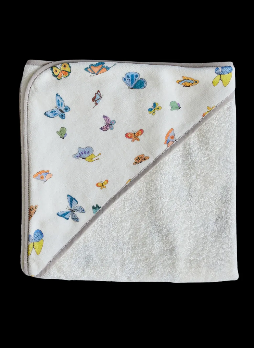Created to be timeless, sustainable and whimsical, Timo & Violet creates luxury bedding and bath linens for your littlest ones. Looking outward from the very beginning, they develop soft fabrics that are safe for both babies’ skin and the earth, decorating them with artwork by women from around the globe. Crafted in organic cotton terry, the Madame Butterfly Hooded Bath Towel will have both parent and baby excited for bathtime, or to come out of the pool. Nothing is cozier, or cuter, than a hooded towel, and nothing is more welcome when it’s time to dry off.