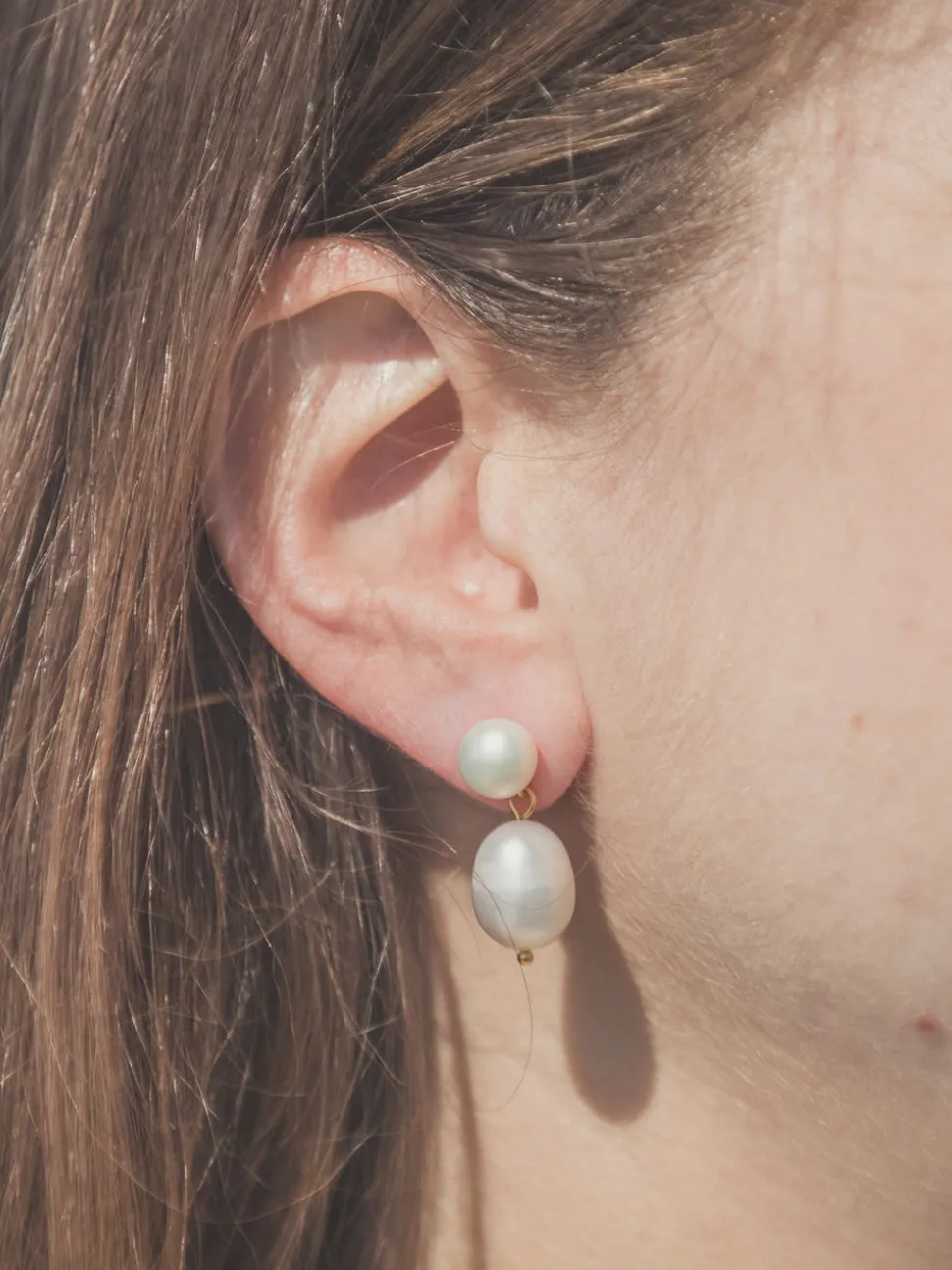 From Newport, Rhode Island, designer Kerry McGauley uses her experience in the fashion industry and inspiration from the town’s picturesque shoreline to craft singular yet timeless pieces—shining at the most memorable events and through your everyday. Adorned with freshwater pearls, the Madeline Earrings in White feature a gold-plated sterling silver post fastened with a butterfly closure.
