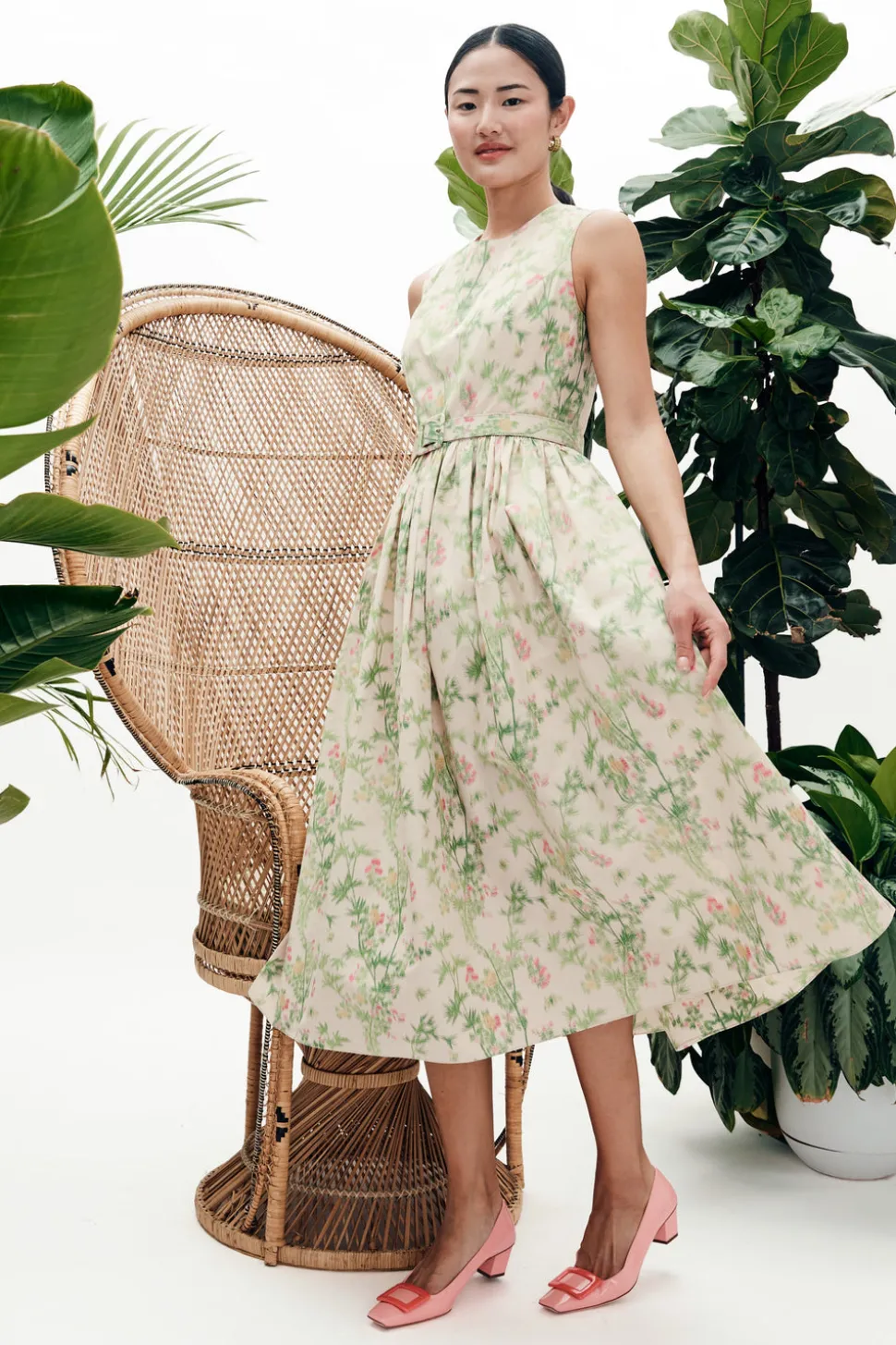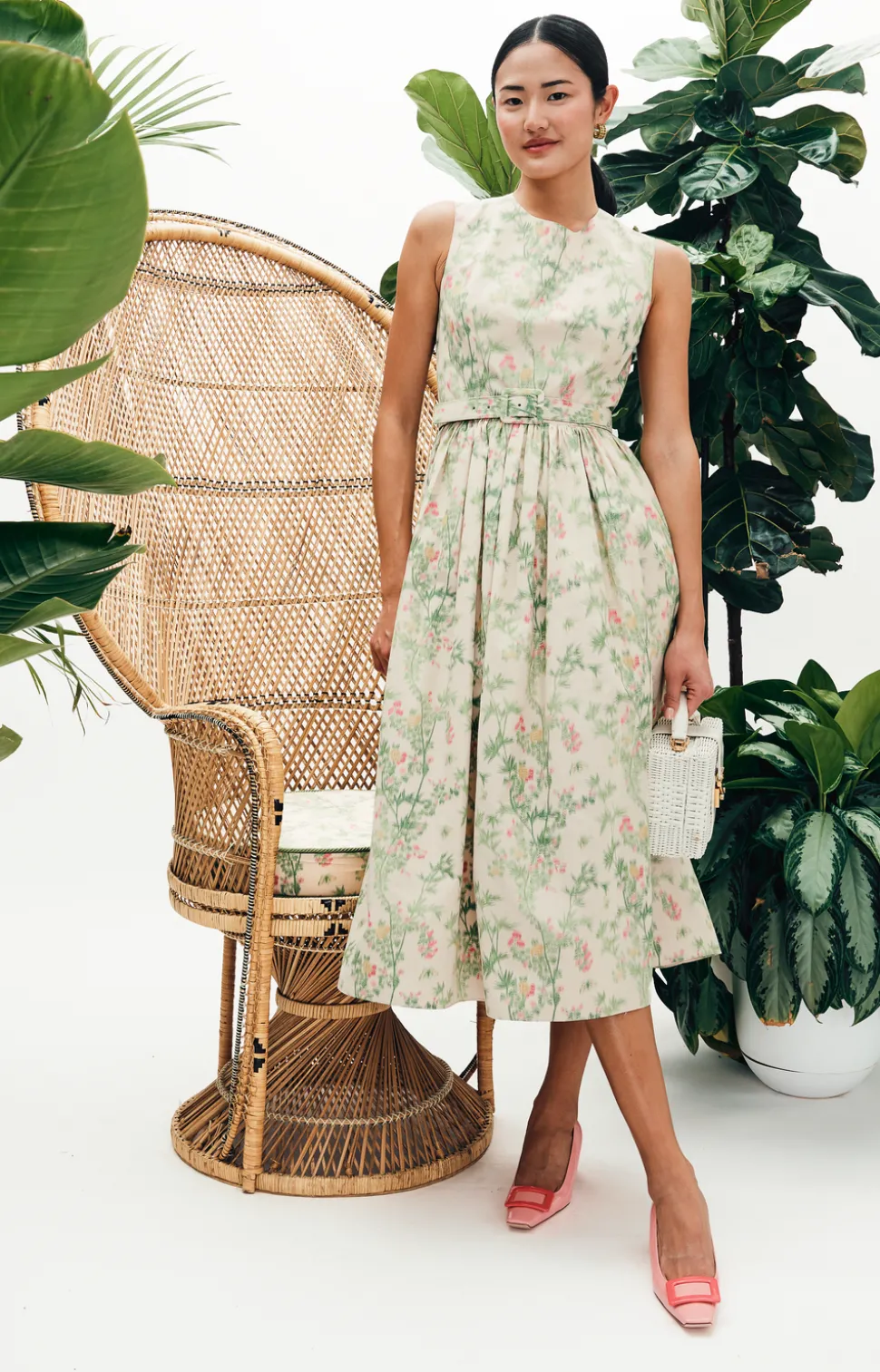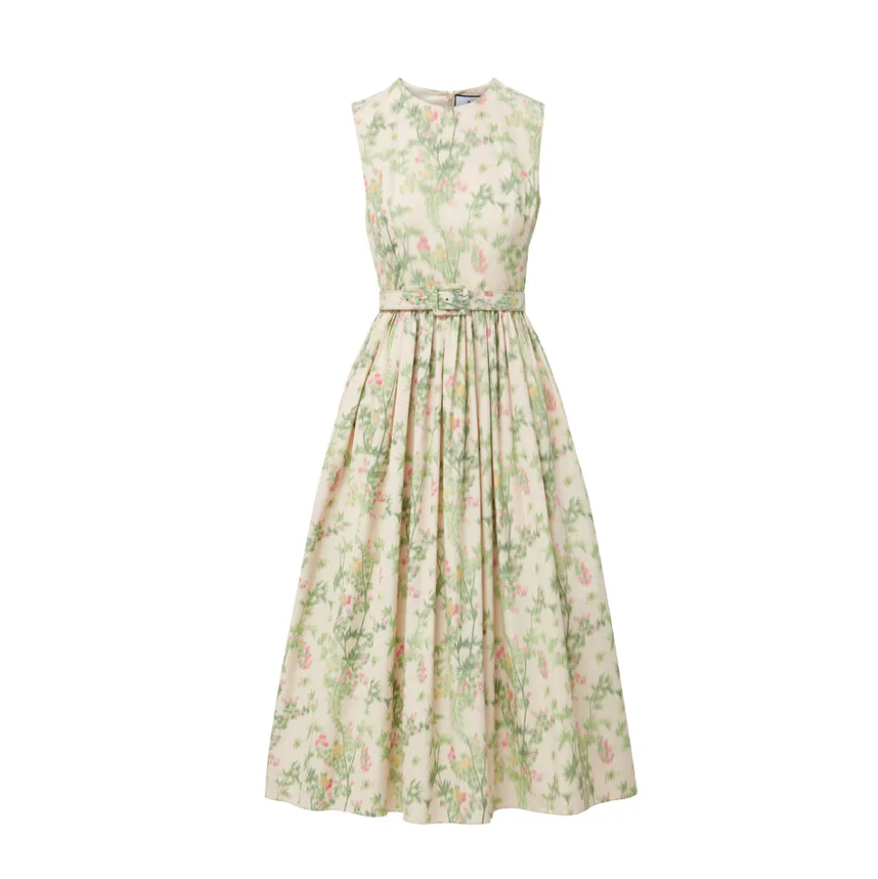 MAE New York seeks to revitalize New York’s historical garment district by creating small-batch and made-to-order collections—modern interpretations of 1960s glamor—highlighting tailoring, luxury materials, and craftsmanship. The MAE x Scalamandré Sadie Dress in Jardin De Chine is fit-and-flare perfection. With a full gathered skirt, fitted bodice, and removable leather-backed belt, she’s effortlessly versatile and endlessly flattering—ready for any occasion. The collaboration with Scalamandré features their famed “Jardin de Chine” wallpaper design thought to date back to the 1960s or 1970s. The pattern was discovered in the Noble Hardee Mansion in Savannah, Georgia—a stunning relic often called “the last unrestored grand mansion in Savannah.” Working with a mill in Italy, the brand reimagined the iconic wallpaper as a chiné fabric—a luxurious material known for its distinctive blurred or watercolor-like patterns, achieved through a specific pre-weaving dyeing process.