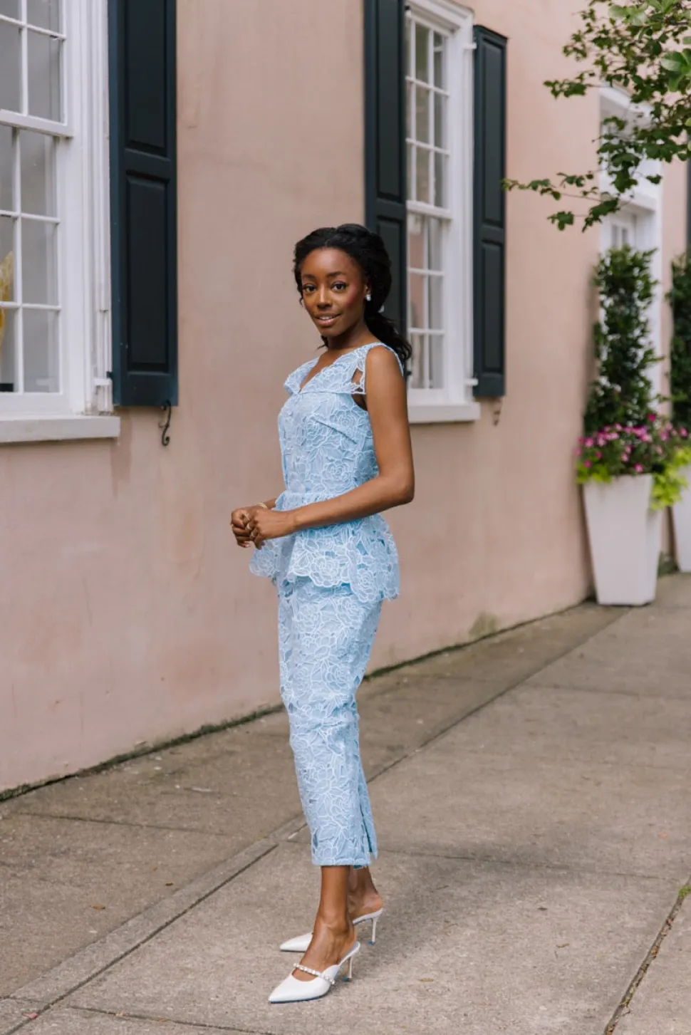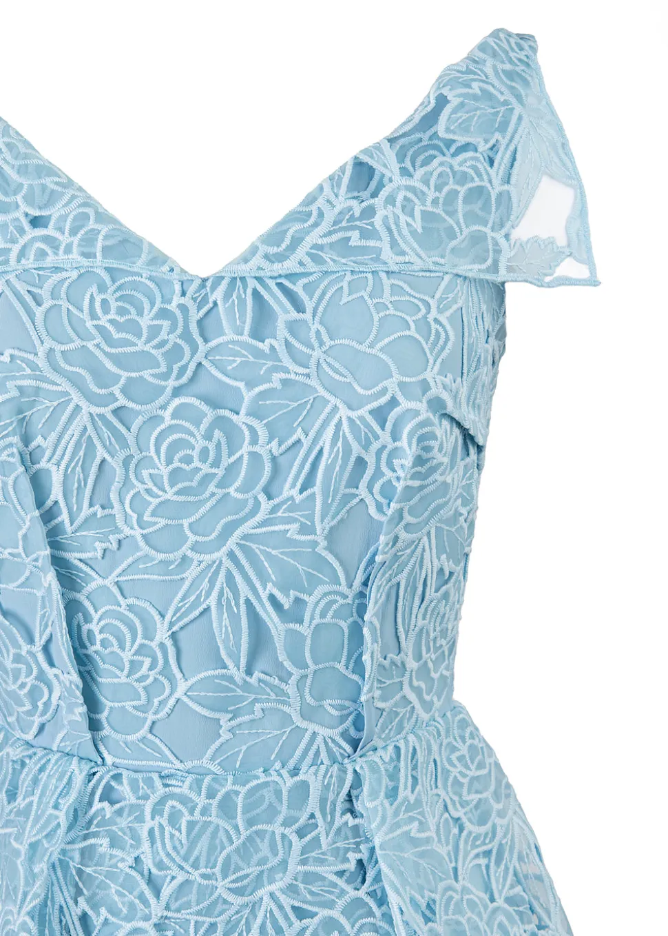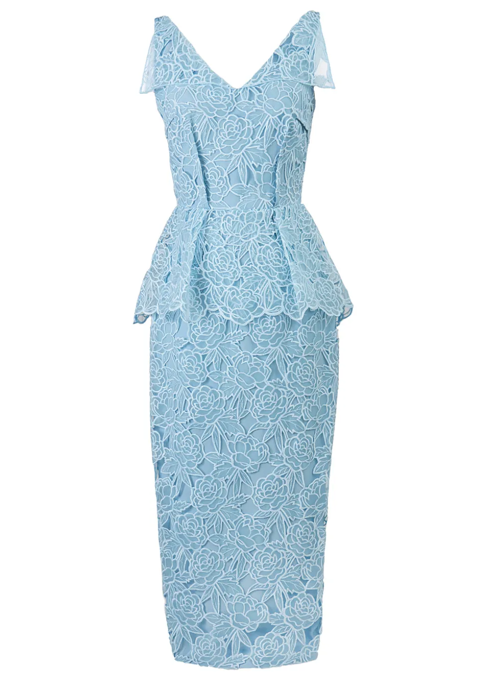 Emilia Wickstead is the epitome of modern femininity. Established in the U.K. in 2008, the ready-to-wear designer is known for impeccable tailoring, bold color, and timeless quality. The techniques take shape in the Viri Dress. A sleeveless midi, the Maesa Organza Floral Dress in Baby Blue has exquisite layered details to draw the eye, and then careful details—like a cutout back, and florals—to accentuate its organza lace construction. A showstopper that offers both sophistication and style.