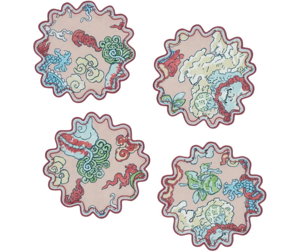 For nearly 100 years and three generations, Matouk has handcrafted luxury linens from the world’s finest materials. Their dedicated artisans in Fall River, Massachusetts are committed to creating the highest quality, most-loved bed, bath, and table linens for your home. Celebrating the fantastical motifs of ancient myth and legend, Schumacher’s Magic Mountain features a psychedelic formation of foo dogs and fire-breathing dragons. Printed in Portugal on signature table linen, the Magic Mountain Cocktail Napkin, Set of 4 is finished with a meticulously embroidered, two-color wave border that is designed to make a statement. Each set of Cocktail Napkins comes in a beautiful Matouk Gift Box.
