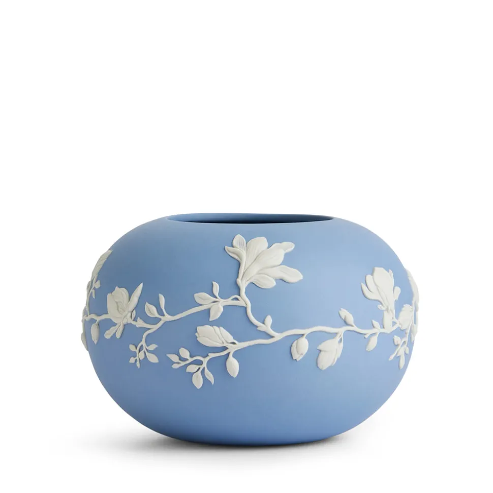 For over 260 years, Wedgwood has produced timeless, eclectic stoneware and china that has graced the tabletops of kings, queens, and some of the finest dining rooms in the world. From its factory in Barlaston, England, the brand’s signature dishware and household items are thrown, modeled and decorated by artisans who spend a lifetime mastering their craft. A quintessentially English design, the Magnolia Blossom collection features sculpted white magnolia petals unfurling over the unique texture of blue Jasper. The Magnolia Blossom Rose Bowl 6″ is the perfect setting for your seasonal blossoms or cuttings, though it also looks perfect just on its own.