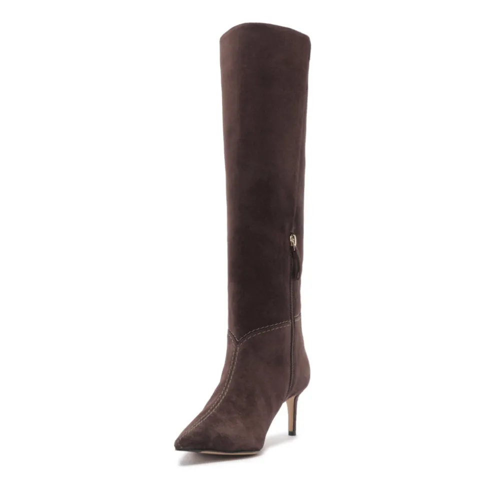 The Malva Boot 60 Brown boasts a sleek 60mm heel and refined, modern design. Available in two shaft height options, these scamosciato boots exude sophistication and femininity. The contrasting stitching elevates the minimalist look, perfect for occasions where chic and style are a must.