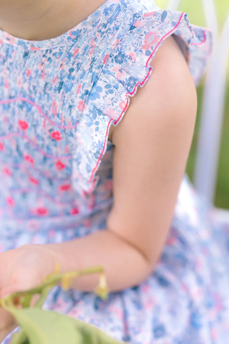 Antoinette Paris creates elegant, handmade garments for little girls, designed in Paris with sophisticated, refined, and exclusive “Haute Couture” details. Their collections include dresses, dungarees, and bubbles, available from birth to 10 years old, made for any occasion and tailored for a new generation of children. On a sunlit morning in the lavender fields of Provence, a little girl twirls, embodying the spirit of the Marguerite Floral Blue Frilled Smocked Dress. Featuring delicate blue and pink floral embroidery, flutter sleeves, and exquisite hand-smocking, this sleeveless design is a celebration of French summer style. With a reversible bow, covered buttons, and a matching purse (from 2T size), this 100% cotton dress is perfect as a girls summer dress or girls birthday dress. Whether for sunny picnics or cherished occasions, it captures the timeless charm of a floral dress made to inspire unforgettable memories. Pair with Marguerite Smock Bubble for sisters matching outfits.