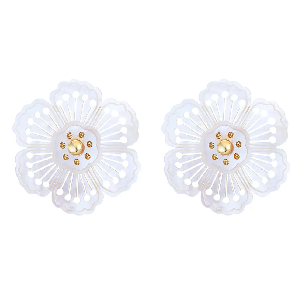 Inspired by art, architecture and the founder’s global journeys, ASHA by Ashley McCormick introduces bold, sophisticated jewelry and accessories made from only the finest materials. From everyday glamour to the red carpet, these statement pieces are classic additions to your collection. Dipped in a 14-karat gold, the Marguerite Oversized Stud features a beautiful floral shape made in mother of pearl.