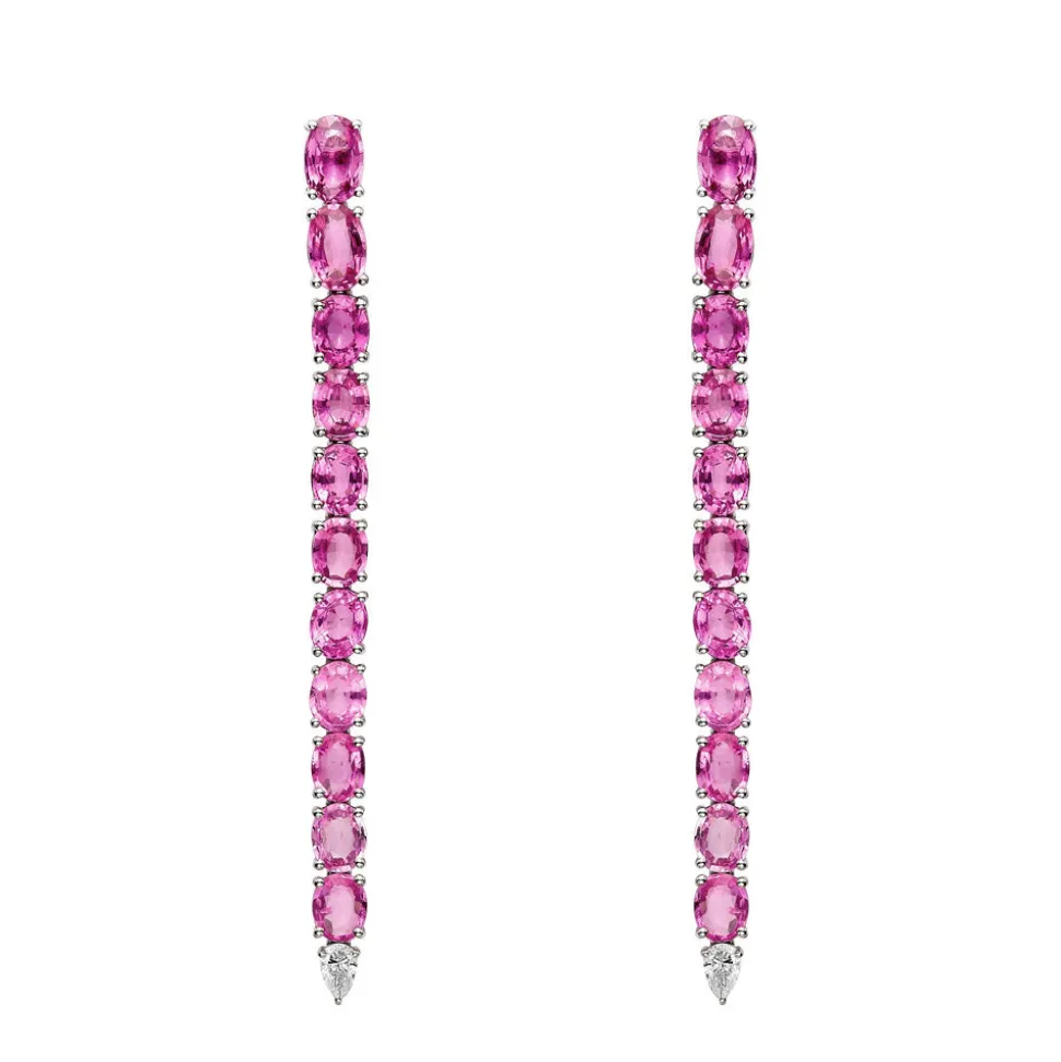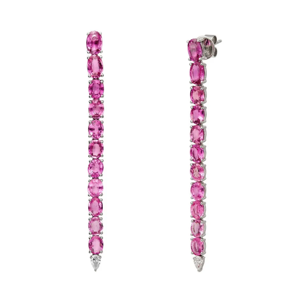 Luxury jewelry house, RUCHI New York, specializes in creating unique and versatile pieces that are exquisitely handmade and boast an heirloom quality. Crafted with precision in a variety of metals, each piece by this brand is designed to be cherished as a symbol of enduring love, whether it’s a stunning diamond ring or a timeless necklace. Pretty in pink, the Marian Drop Earrings features ombre pink sapphires.