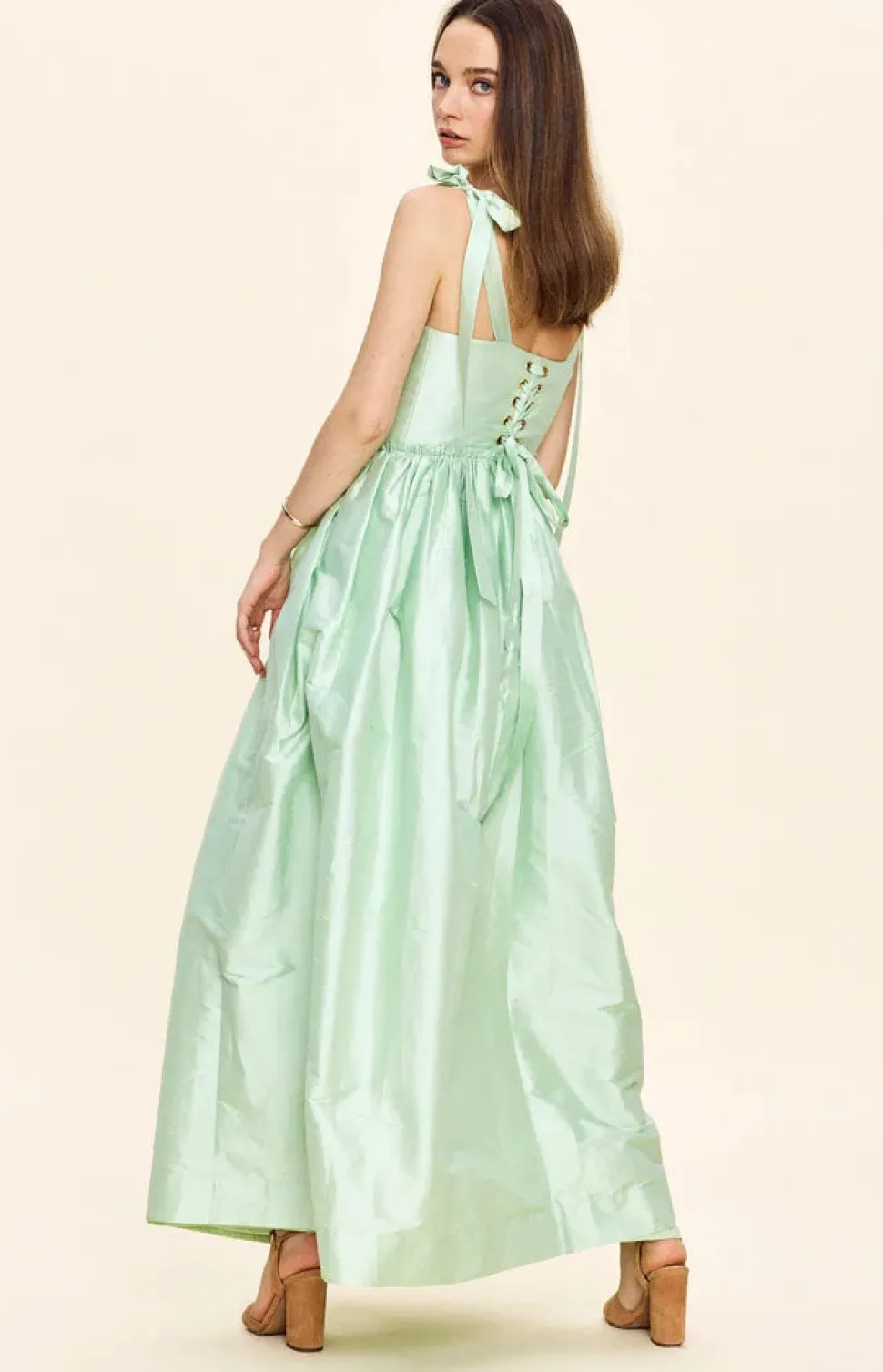 Louise New York creates its collection with the past and present in mind. Inspired by timeless glamour instead of trends, when you slip into a Louise New York dress, you carry all the confidence and carefree attitude that femininity can acclaim. Get best dressed with the Marie Dress in Pistachio. This silhouette features a signature corset lace-up back to fit any waist, and boasts a bust with ties at the shoulder for an even more custom fit.