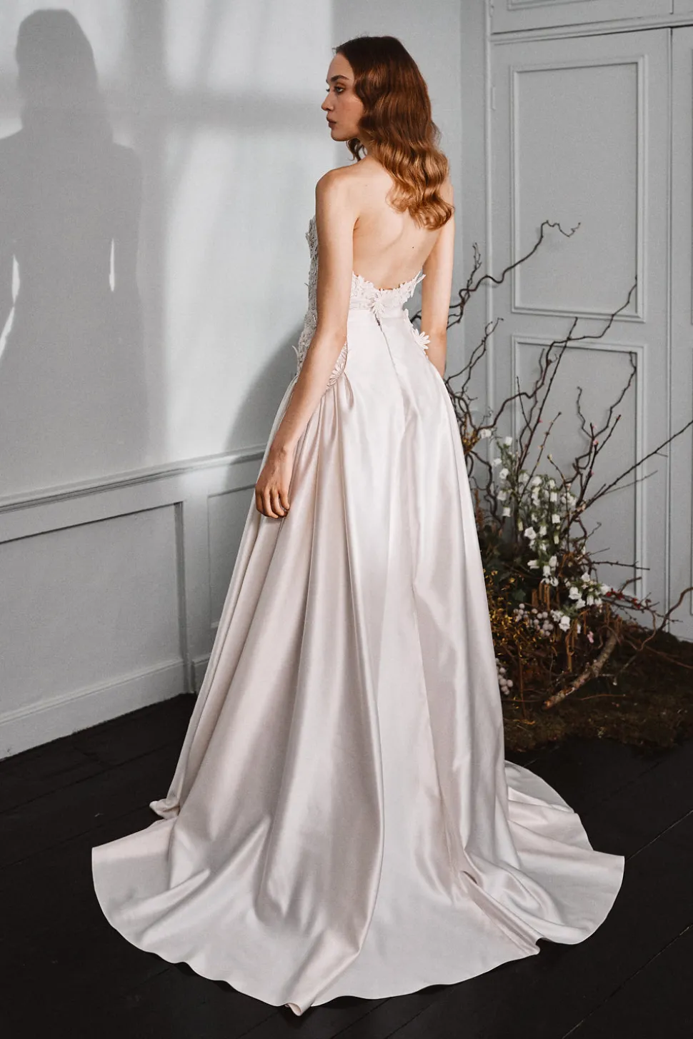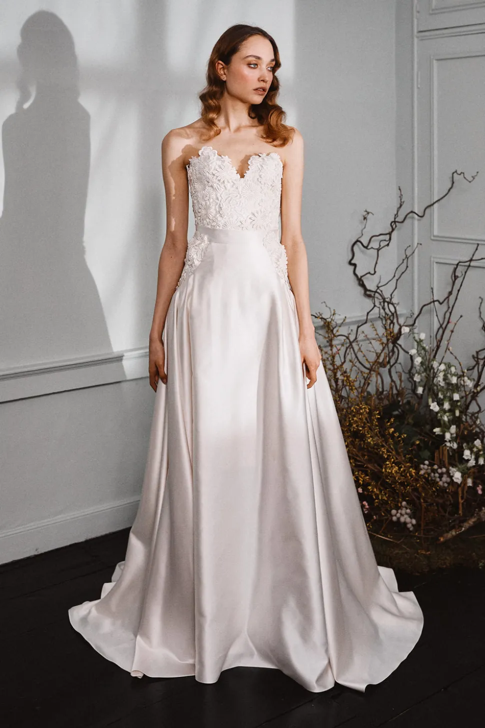 Luxury bridalwear brand Halfpenny London weaves Brit cool with a luxe sensibility, creating innovative, chic dresses and separates for the modern woman. The Markham Skirt adds volume and elegant drama to any bridal ensemble…and it has pockets!