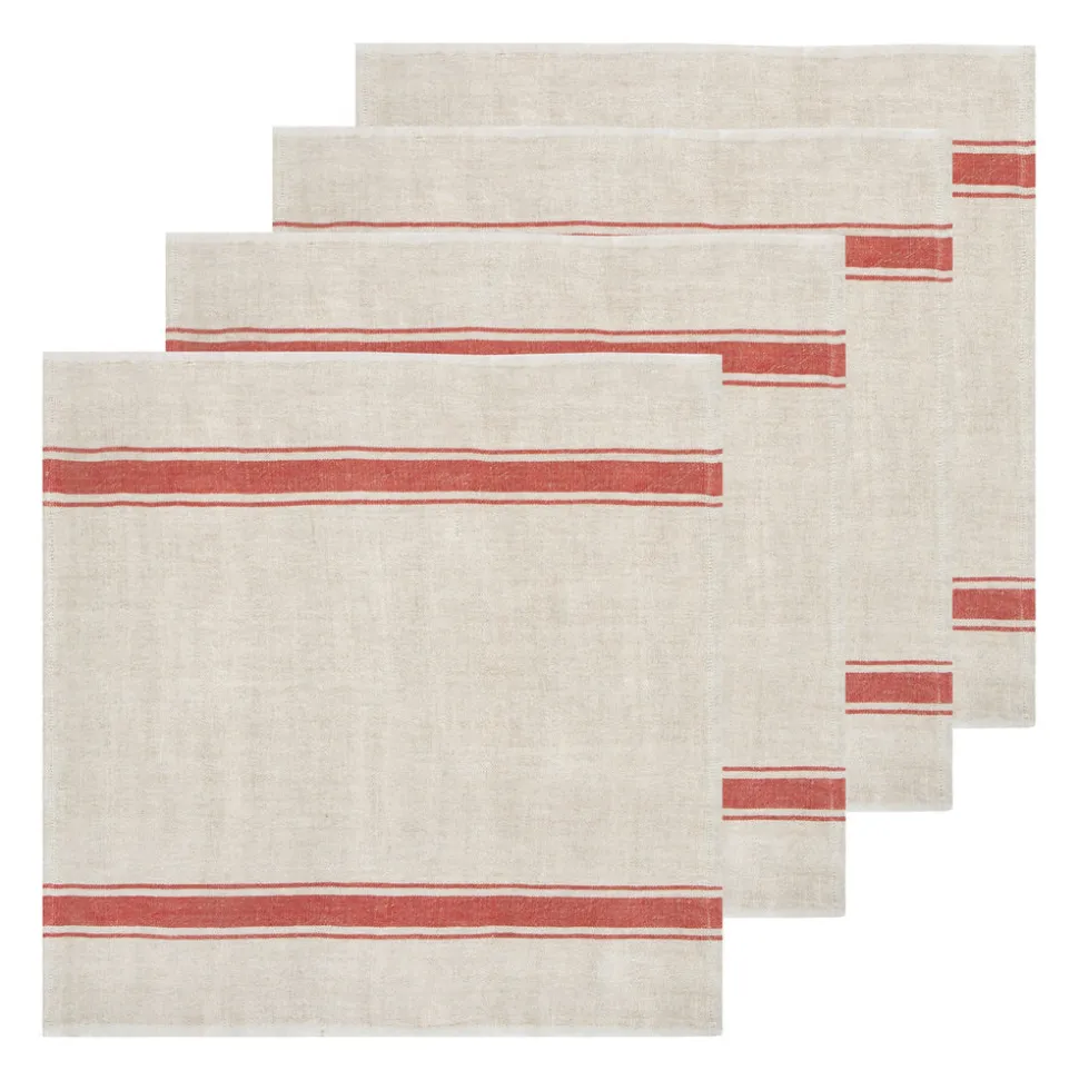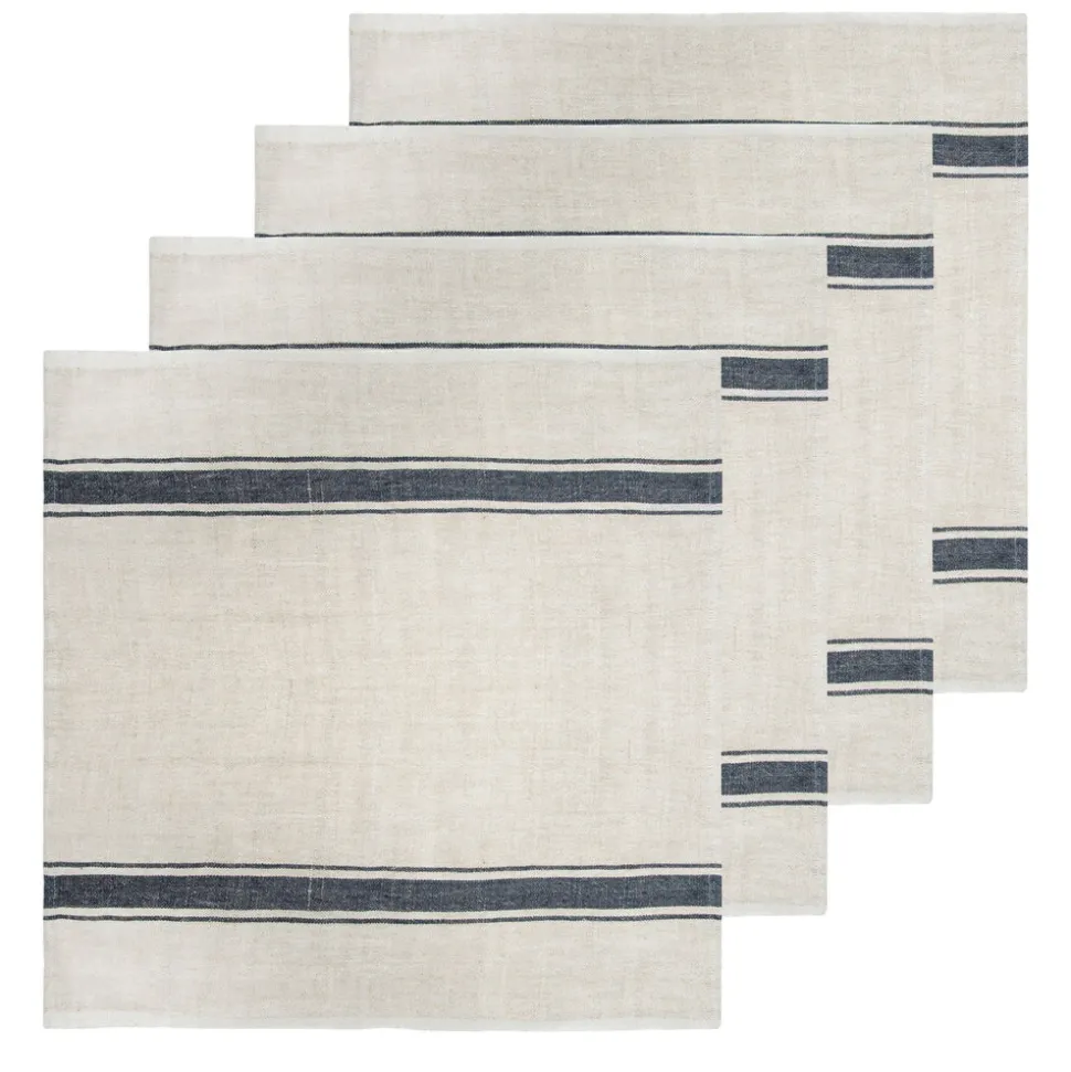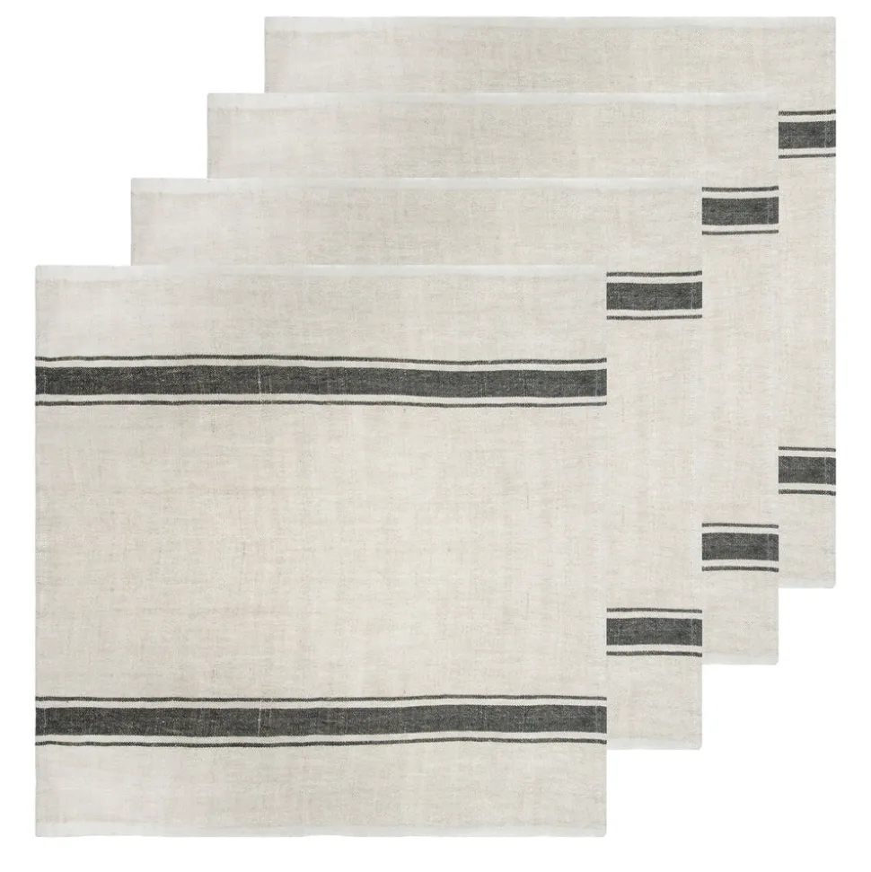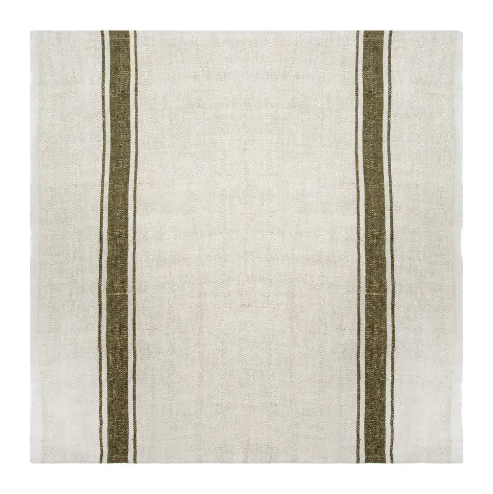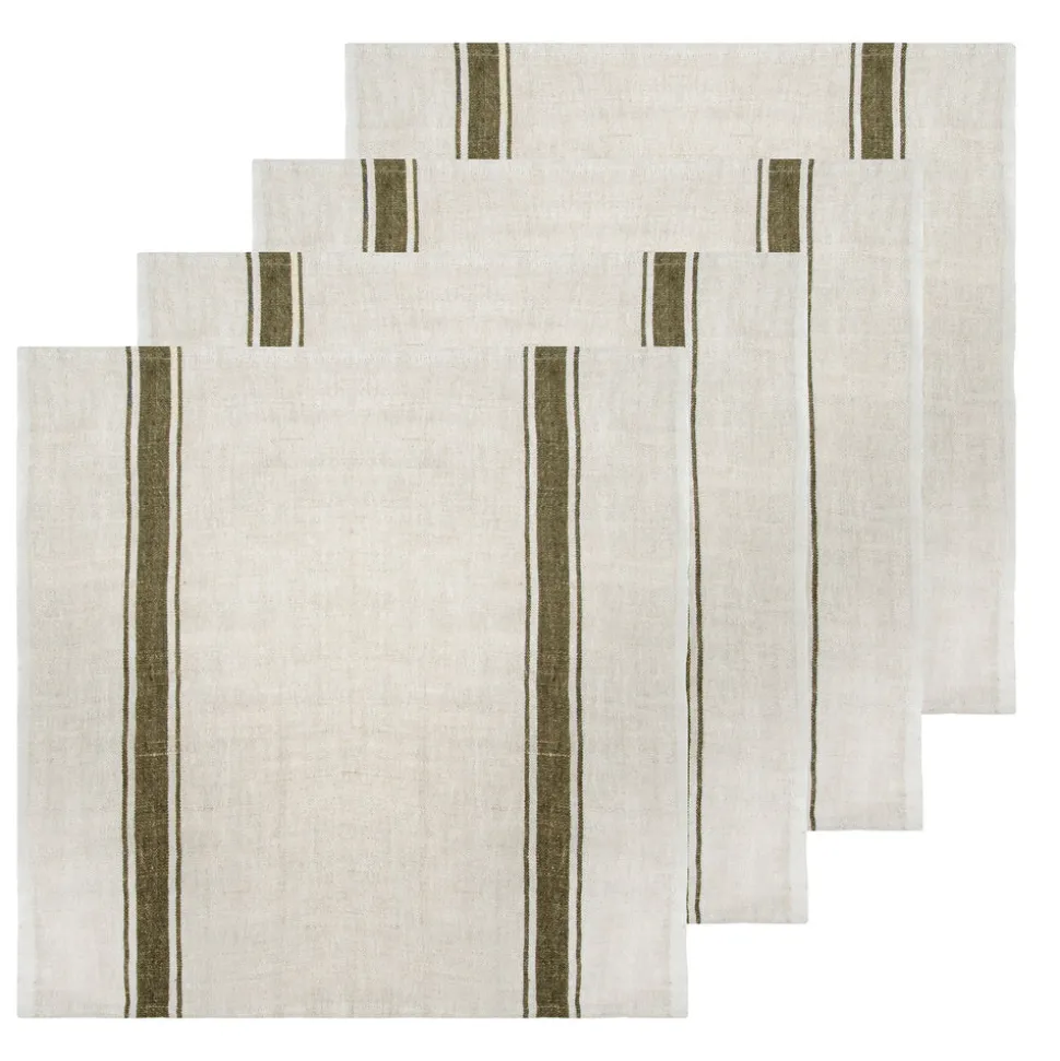 Inspired by stylistic trends from around the world, Caravan’s home accents embody an aesthetic that is both unique and unexpected, bringing everyday beauty and sophisticated simplicity to your home. The Marseille Napkins in Olive Green & Natural, Set of 4, is designed to infuse a rustic charm into any kitchen. Crafted with utmost care, with a stripe pattern, these towels are a testament to artisanal craftsmanship.