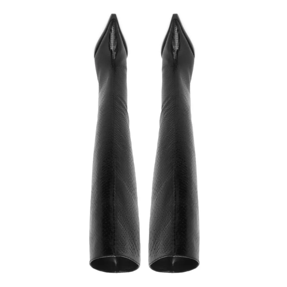 Founded in 1995 by Alexandre Birman, Schutz redefines attainable luxury with its stylish footwear. With each new release, the brand delivers of-the-moment collections, defined by confident, bold designs around which entire outfits can be built. The Mary Up Boot in Black commands attention with its knee-high silhouette in striking snakeskin. A pointed toe and slender stiletto heel create a sleek, seductive profile that exudes confidence and edge.