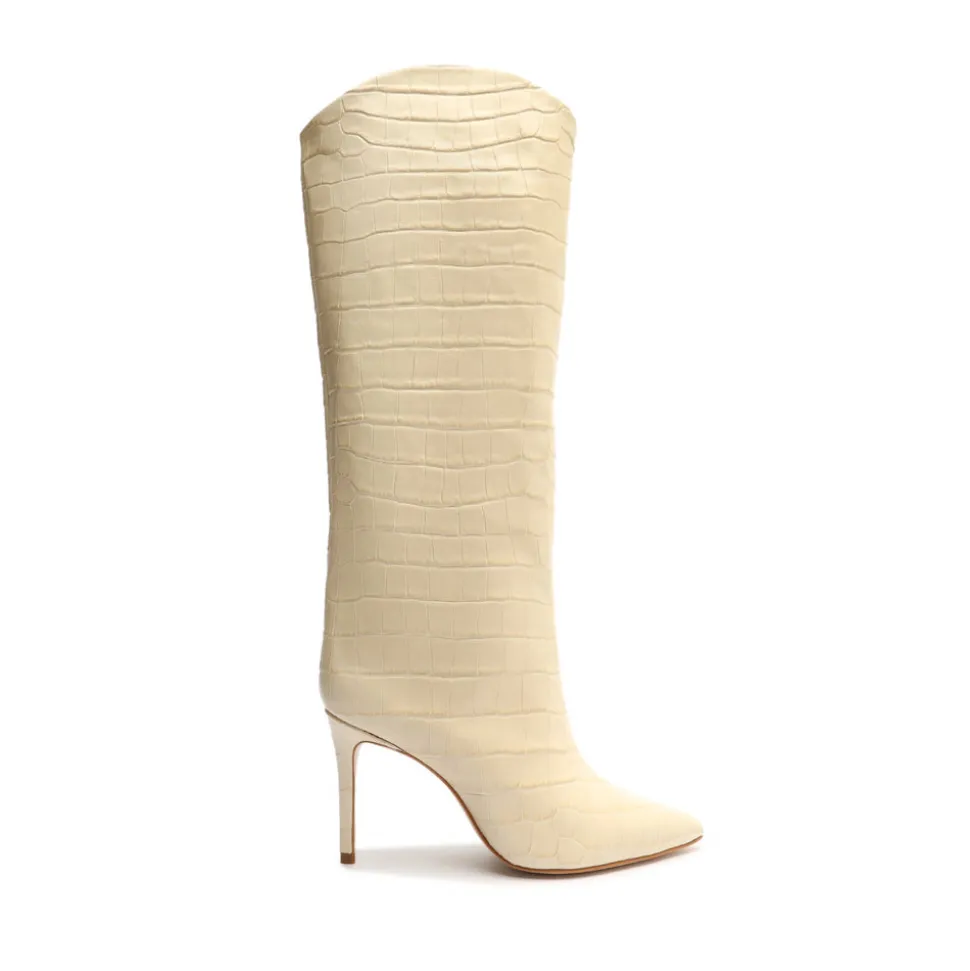 Founded in 1995 by Alexandre Birman, Schutz redefines attainable luxury with its stylish footwear. With each new release, the brand delivers of-the-moment collections, defined by confident, bold, designs around which entire outfits can be built. There are boots and then there is the Maryana Crocodile-Embossed Leather Boot in Eggshell, crafted in luxurious crocodile-embossed leather and boasting a fine stiletto heel. Alluring and sophisticated, we love it both with your favorite jeans and most elegant dresses.