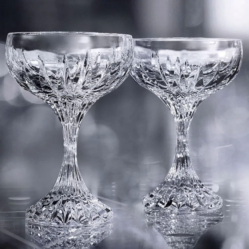Founded in 1765, Baccarat is renowned throughout the world for the remarkable quality and timeless design of its glassware. With master blowers, cutters, engravers, and gilders honing their techniques to perfection, Baccarat introduces you to the finest crystal and an entire world of excellence. Deep orgue bevel cuts are etched directly into the clear crystal. The intricate detailing gives the Massena glass the appearance of impressive heft, and the polished silhouette and prismatic qualities make it worthy of any festive occasion or special soiree.