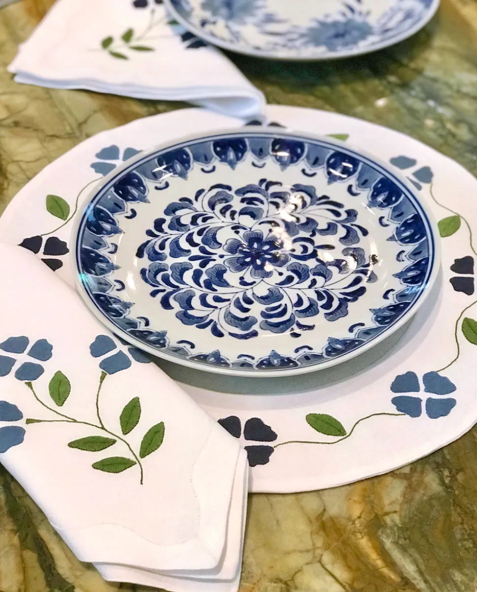 Elizabeth Lake believes in buying what you love—and what’s built to last. Her linens are meant to be used regularly because the goal is always to celebrate often and pass down the good stuff. Every tabletop piece in the collection incorporates centuries-old techniques but is made for the modern host or hostess. Inspired by Matisse’s 1953 Large Decoration with Masks and crafted on a fine Belgian linen base, the Matisse Floral Placemats are a lively blue-hued addition to both everyday and special occasion tablescapes.