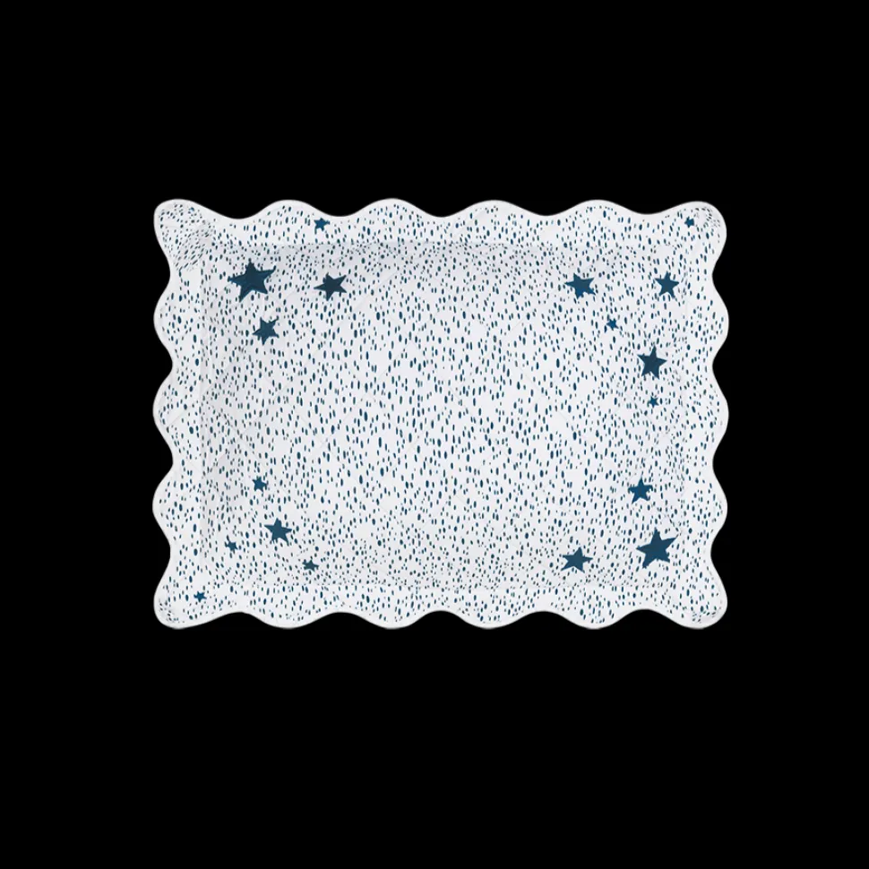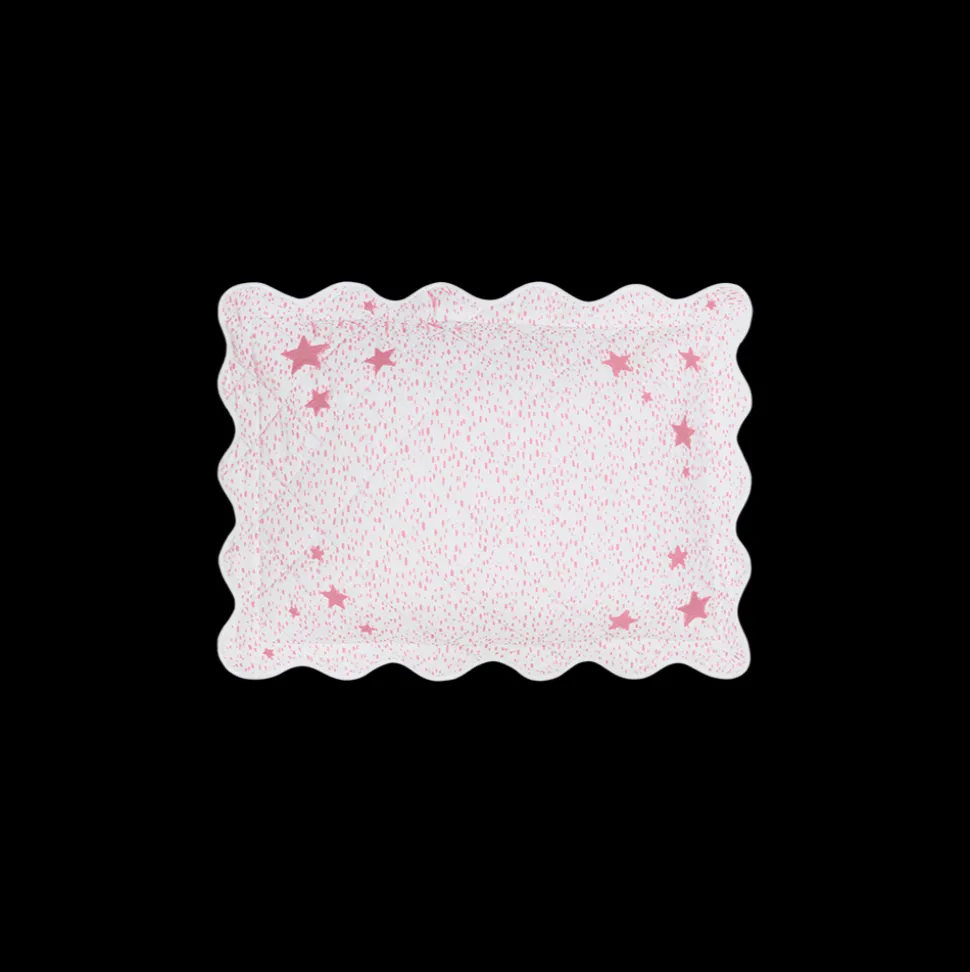 For nearly 100 years and three generations, Matouk has handcrafted luxury linens from the world’s finest materials. Their dedicated artisans in Fall River, Massachusetts are committed to creating the highest quality, most-loved bed, bath, and table linens for your home. Featuring the painterly dots of Schumacher’s classic “Duma,” framed with a sprinkle of star motifs, the Celine Stars Mini Boudoir Pillow is a soft as can be for your little one and boasts a gently scalloped edge.