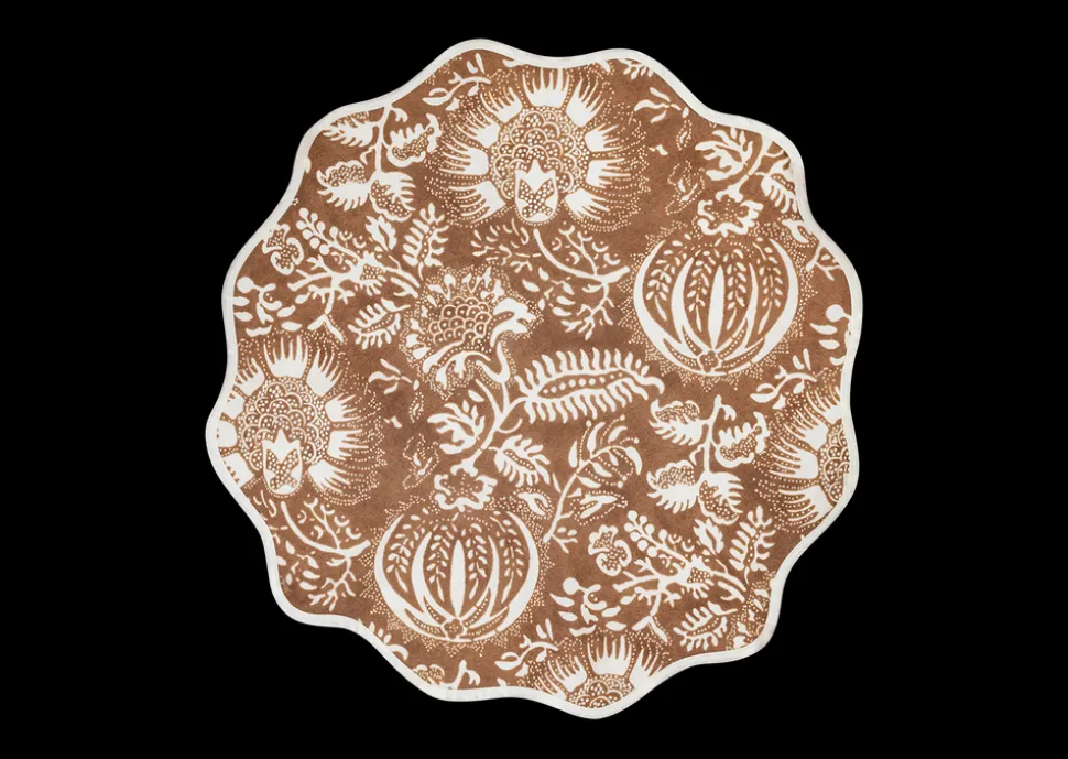 For nearly 100 years and three generations, Matouk has handcrafted luxury linens from the world‚Äôs finest materials. Their dedicated artisans in Fall River, Massachusetts are committed to creating the highest quality, most-loved bed, bath, and table linens for your home. Hand-dyed textiles serve as inspiration for this intricate Schumacher botanical that places the symbolic pomegranate at its center. Perhaps history’s most revered fruit, the pomegranate is believed to represent marriage, birth, prosperity, hope and abundance, adding meaning and merriment to these table linens; finished with the brand‚Äôs scallop piped edge.