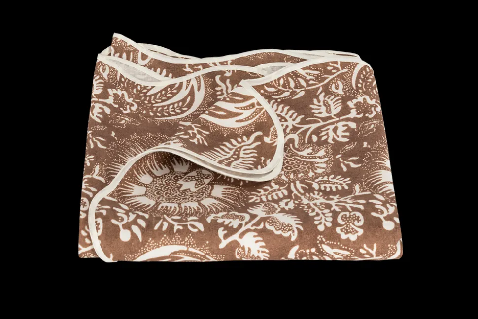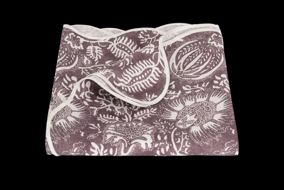 For nearly 100 years and three generations, Matouk has handcrafted luxury linens from the world’s finest materials. Their dedicated artisans in Fall River, Massachusetts are committed to creating the highest quality, most-loved bed, bath, and table linens for your home. Hand-dyed textiles serve as inspiration for this intricate Schumacher botanical that places the symbolic pomegranate at its center. Perhaps history’s most revered fruit, the pomegranate is believed to represent marriage, birth, prosperity, hope and abundance, adding meaning and merriment to these table linens; finished with the brand’s scallop piped edge.