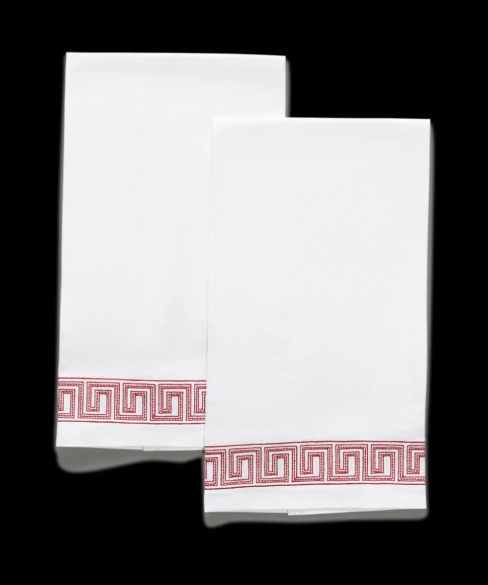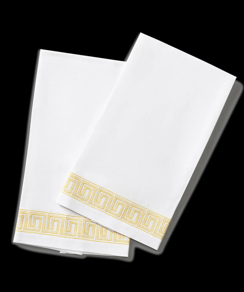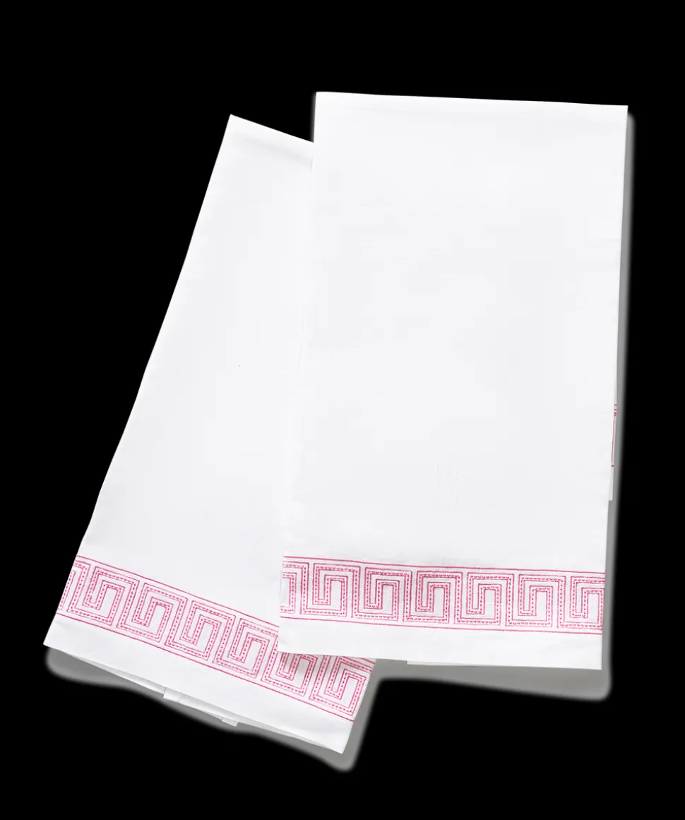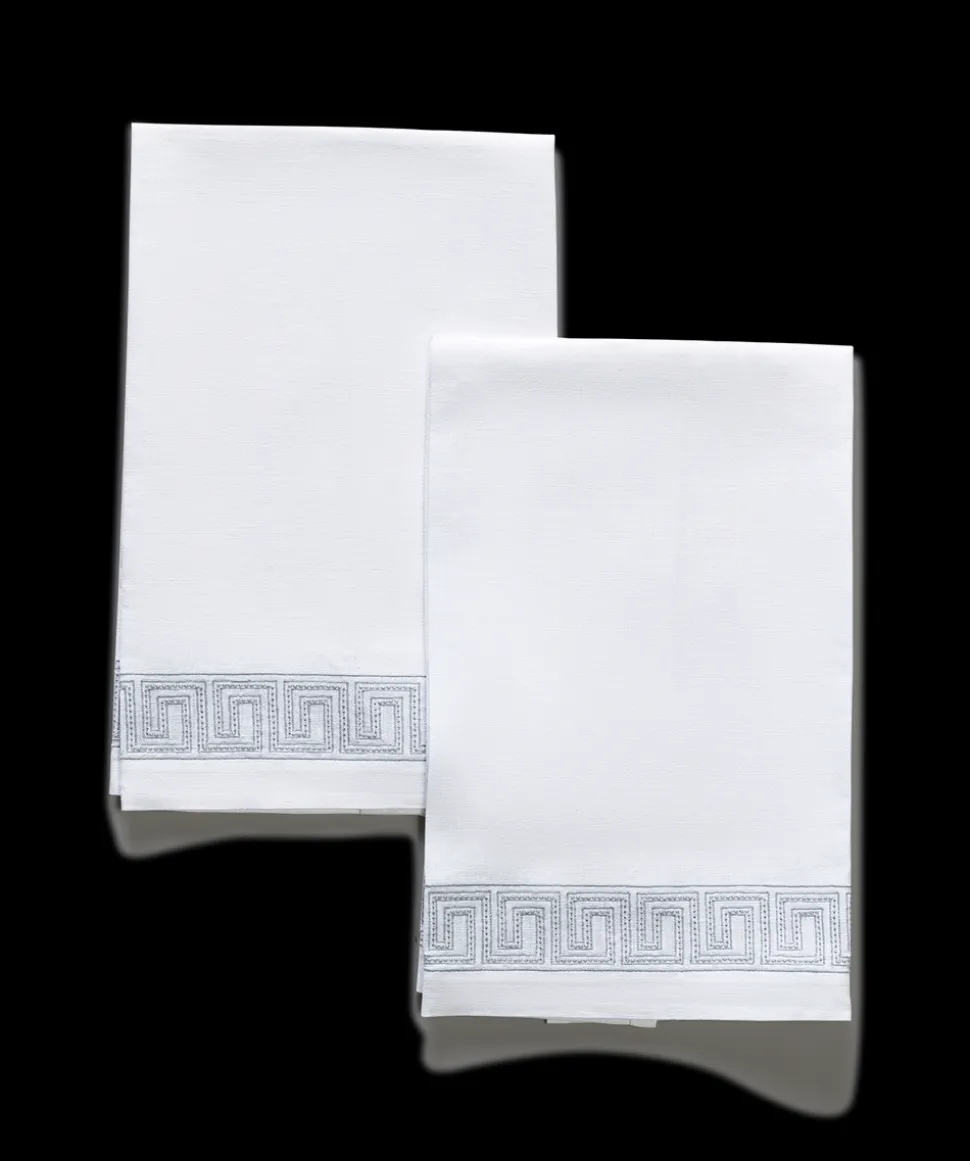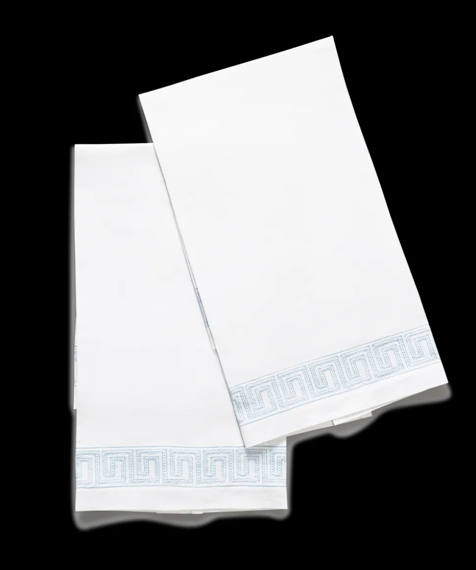 For nearly 100 years and three generations, Matouk has handcrafted luxury linens from the world’s finest materials. Their dedicated artisans in Fall River, Massachusetts are committed to creating the highest quality, most-loved bed, bath, and table linens for your home. Inspired by an intricately beaded Schumacher tape, the boldly embroidered Ophelia Guest Towels, Set of 2 embody a traditional Greek key pattern at larger scale with a bespoke sensibility.