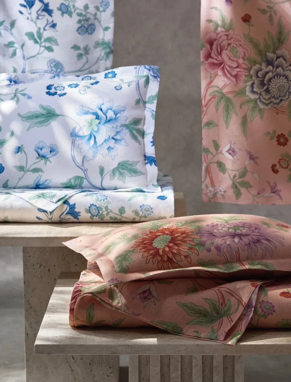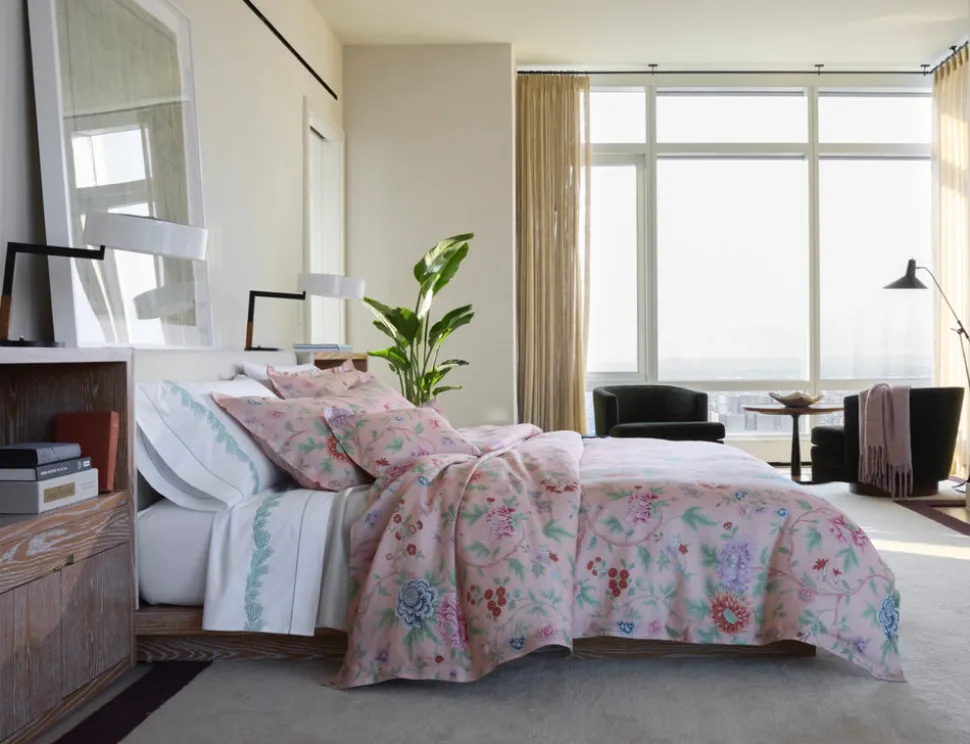 For nearly 100 years and three generations, Matouk has handcrafted luxury linens from the world‚Äôs finest materials. Their dedicated artisans in Fall River, Massachusetts are committed to creating the highest quality, most-loved bed, bath, and table linens for your home.¬†Utterly vibrant,¬†the Matouk Schumacher Simone Collection’s print is inspired by a 19th century English fabric remnant, hand-selected from Schumacher’s vast archive. We love it in the brand’s ultra soft Roman linen, delighting in textures and embroideries.