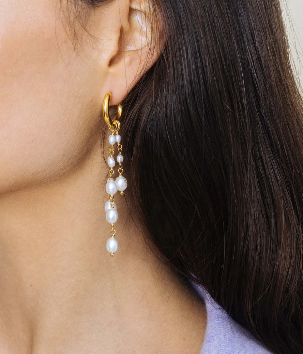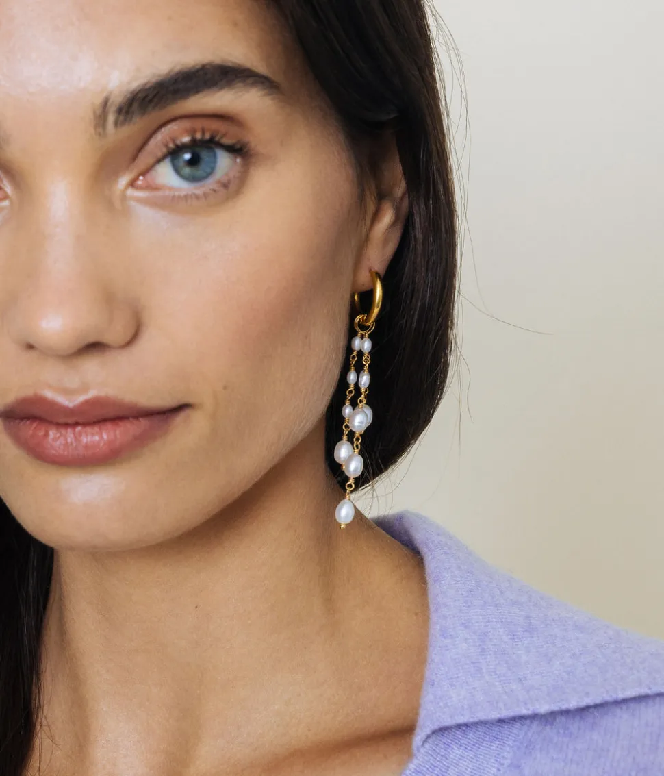 Loren Barham founded her jewelry line in 2005 as a means to reconnect with the vintage jewels that inspired her as a child. Today, the dynamic, artistic, original pieces of Loren Hope, designed at their flagship store in Newport, Rhode Island, serve as a bridge between nostalgia and thoroughly modern women everywhere. With pearls falling like water droplets, the Mattie Pearl Huggie Charms are a set of six fresh water pearl strands. These lengthy, elegant earrings can be layered with other single Huggie Charms.