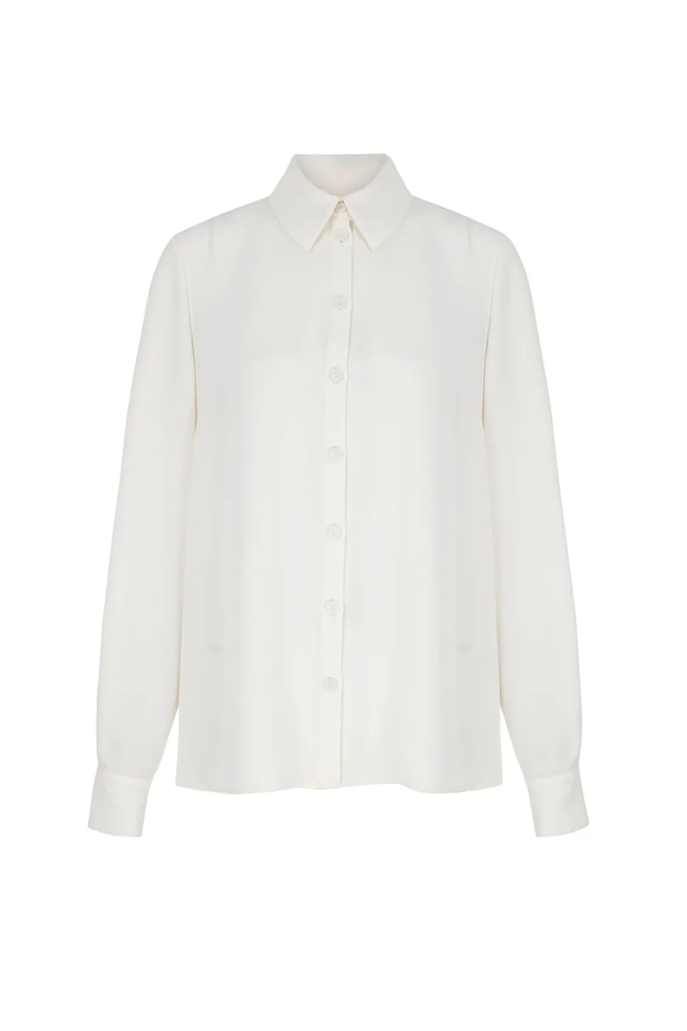 Immaculately cut pure mid-weight silk crepe luxury shirt. A beautiful new addition to the Suzannah London separates collection