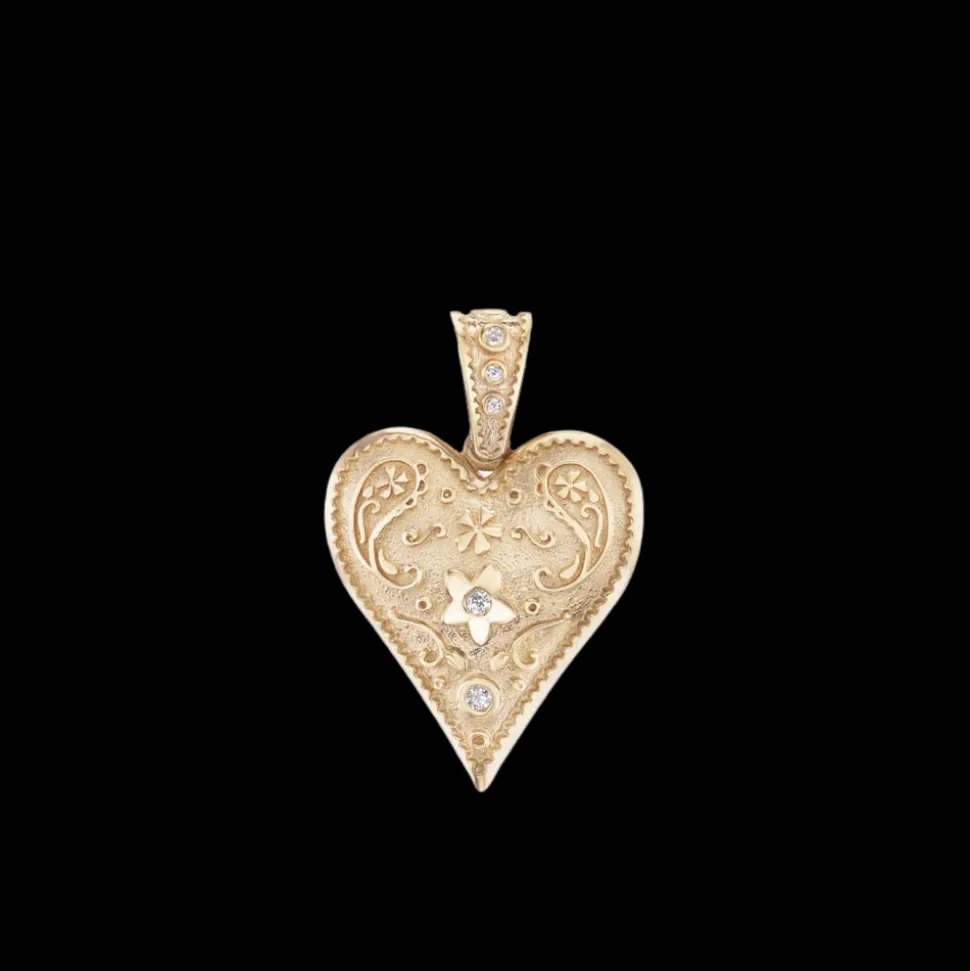 Made in Manhattan, Marlo Laz jewels are modern heirlooms and precious talismans. They are thoughtfully designed for bohemians who carry an adventurous spirit, and the finest taste. Part of the Desert Rising collection, inspired by sage fields, Aspen trees, and gorgeous plains, the Medium Southwestern Heart Charm pays tribute to both its namesake region, and the trailblazing icons, like Georgia O’Keefe and Milicent Rogers, who embody its spirit. With this classic symbol, you can carry all that romance with you.