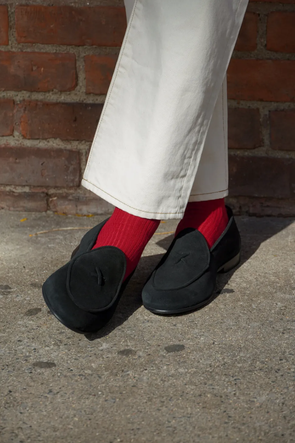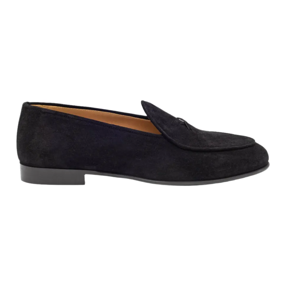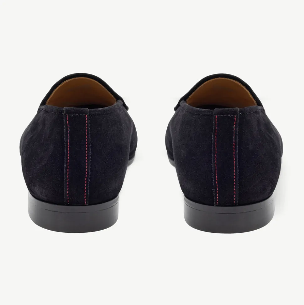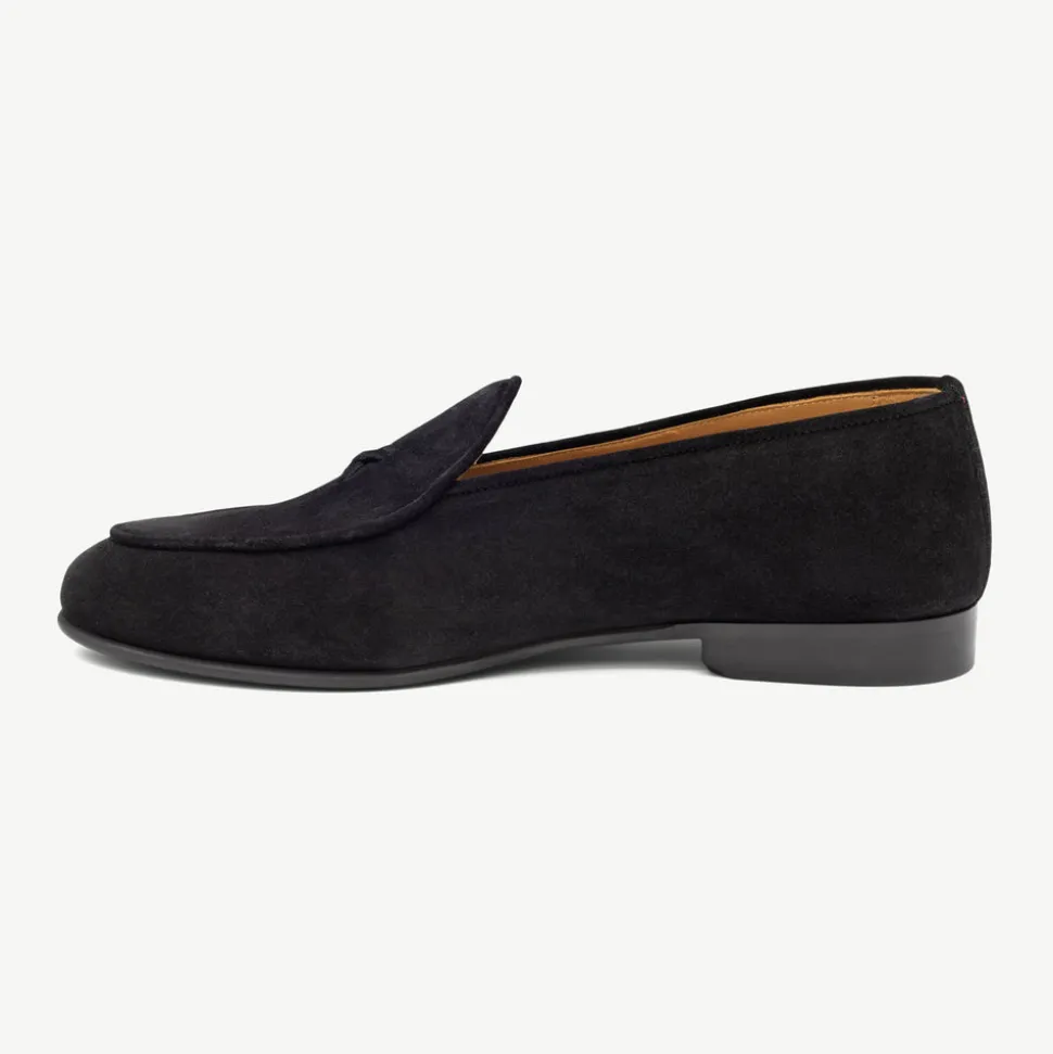Handmade in Italy. Hand-stitched premium quality Italian leather and suede upper construction. Extra soft calf leather lining and cushioned footbed for comfort. Durable custom rubber loafer sole. Signature Del Toro hand-stitched detailing.