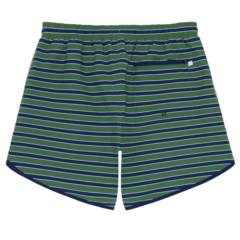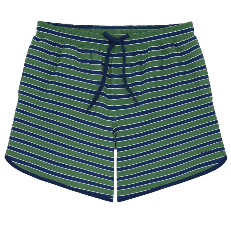 A family favorite for its clean lines and simple details, minnow creates pieces that are playful, polished, and thoughtfully designed for long days, sandy toes, and the wonderment of life on the shore. The Mens Evergreen Stripe Boardie features a 6 inch inseam that hits above the knee. designed in a quick-dry fabric, it features the new and improved fitted boxer-like liner that’s extremely soft and stretchy for the ideal fit. Detailed with an elastic waistband, side pockets and an embroidered minnow logo on the front leg, it’s comfortable for all day wear.